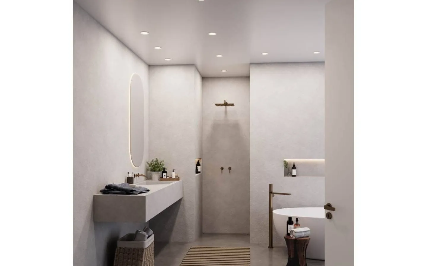 Denna spotlight har en IP65-klassning vilket innebär att den passar bra i badrum. Spotlighten kräver en hålstorlek på 7,2 cm och den behöver ett utrymme som är 4,6 cm djupt. Frontringen har en diameter på 8,5 cm. Dorado spotlight drivs med 230V och levereras komplett med drivdon. Denna infällda spotlight har inbyggd ljuskälla i LED på 4,7W med en maximal ljusstyrka på 345 lumen, färgtemperaturen är varmvit 2700K.