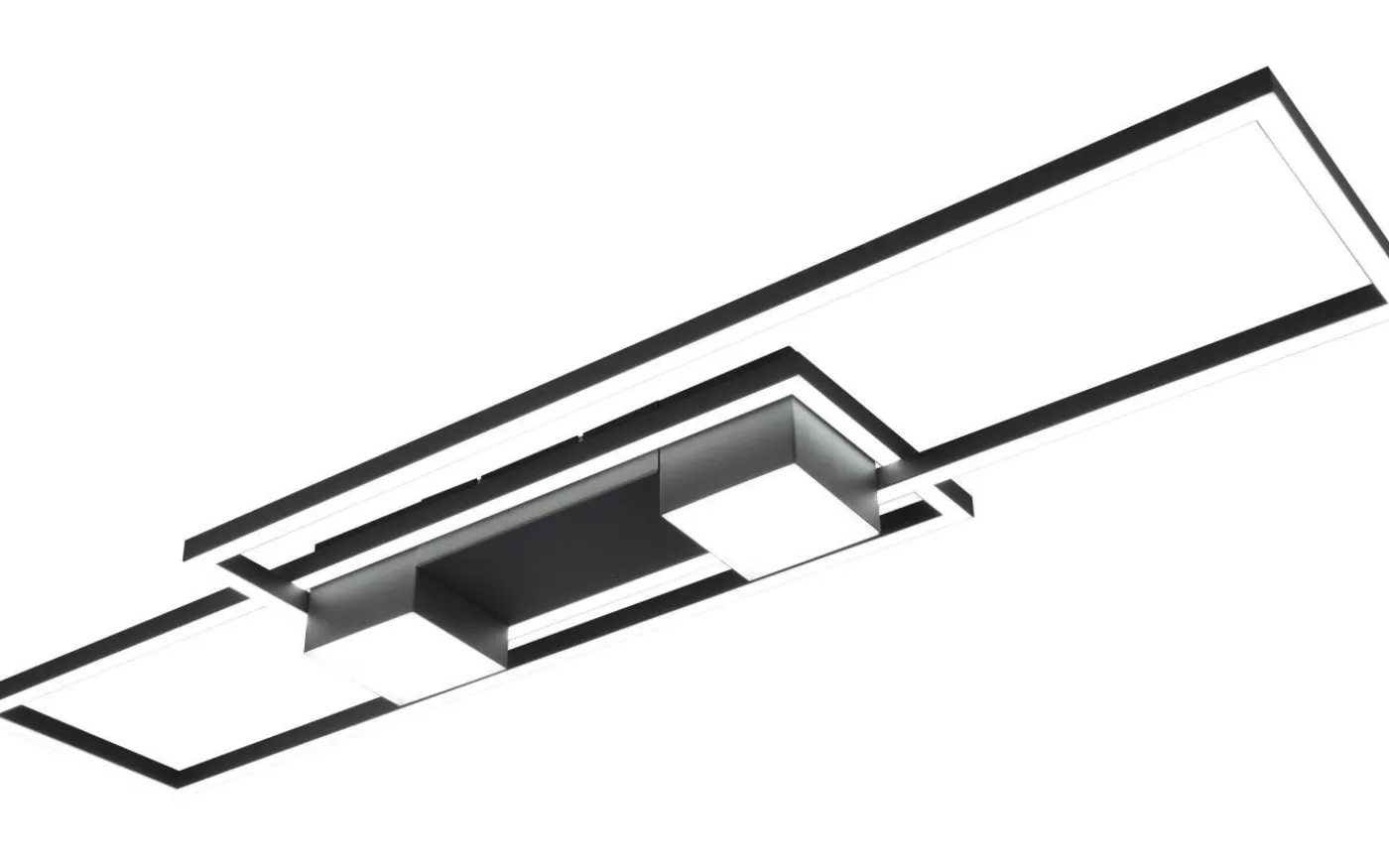 Lamporna i ALBANY-serien är verkligen något alldeles extra! Taklampan imponerar med sin kantiga design och kombinationen av flera ljuselement. Du kan enkelt justera ljusfärg och ljusstyrka efter önskemål med den medföljande fjärrkontrollen. Alternativt kan ljusstyrkan även justeras i tre steg med en vanlig ljusströmbrytare. Den integrerade nattlampan och minnesfunktionen gör lampan till ett oumbärligt element i ditt hem. Dess eleganta aluminium i mattsvart ger en elegant accent till alla rum. Dessutom använder armaturerna modern LED-teknik, vilket står för hög ljuskvalitet. LED-ljuskällor kännetecknas av lång livslängd och låg värmeutveckling. Ljuskälla: inklusive 1x SMD, 37W · 1x 4300lm, 2700 – 6500K. Extra information: Takmontering, Integrerad dimmer, IP20, Steglöst justerbar ljusfärg, Minnesfunktion, Nattlampa, Fjärrkontroll, Dimbar via strömbrytare