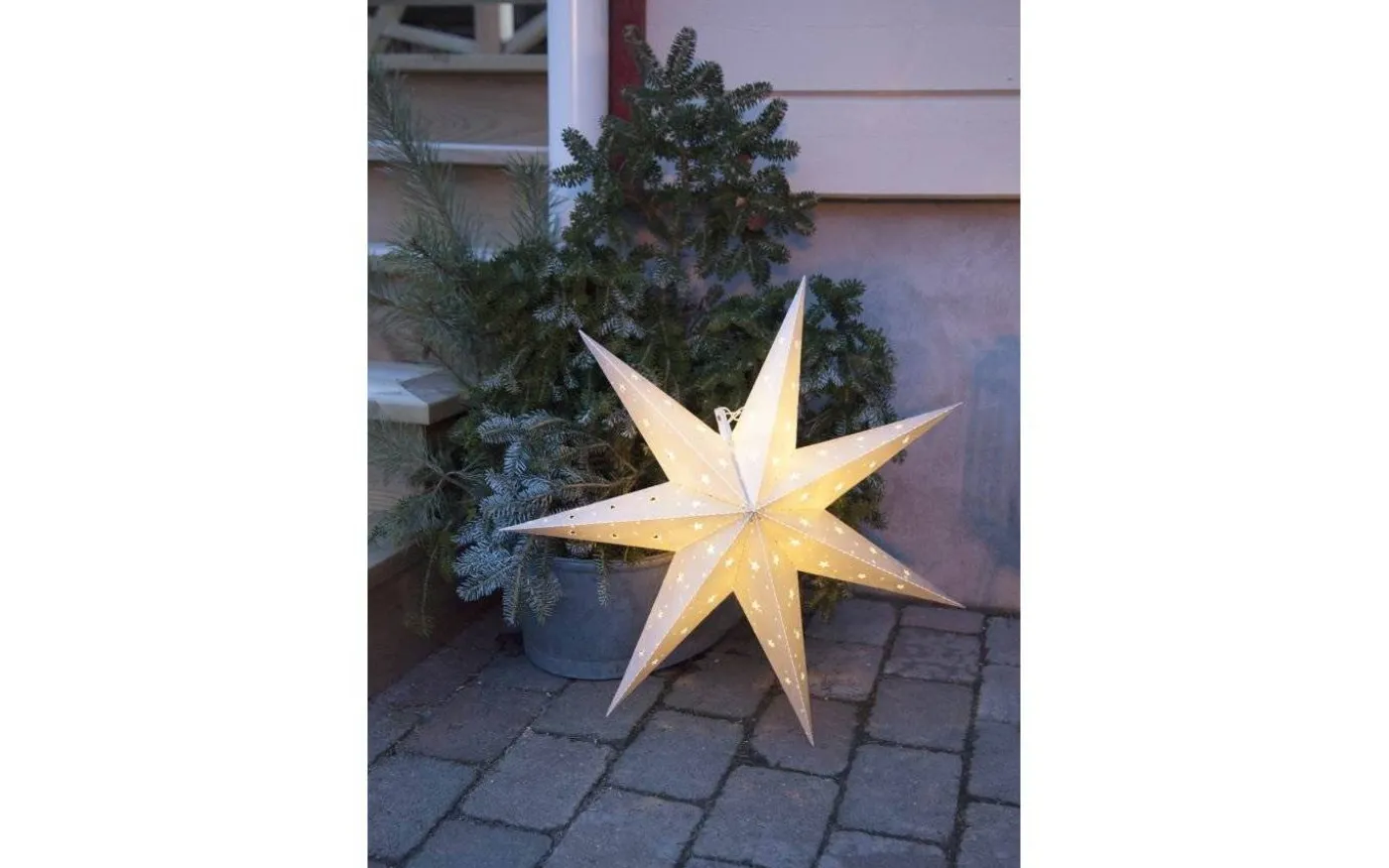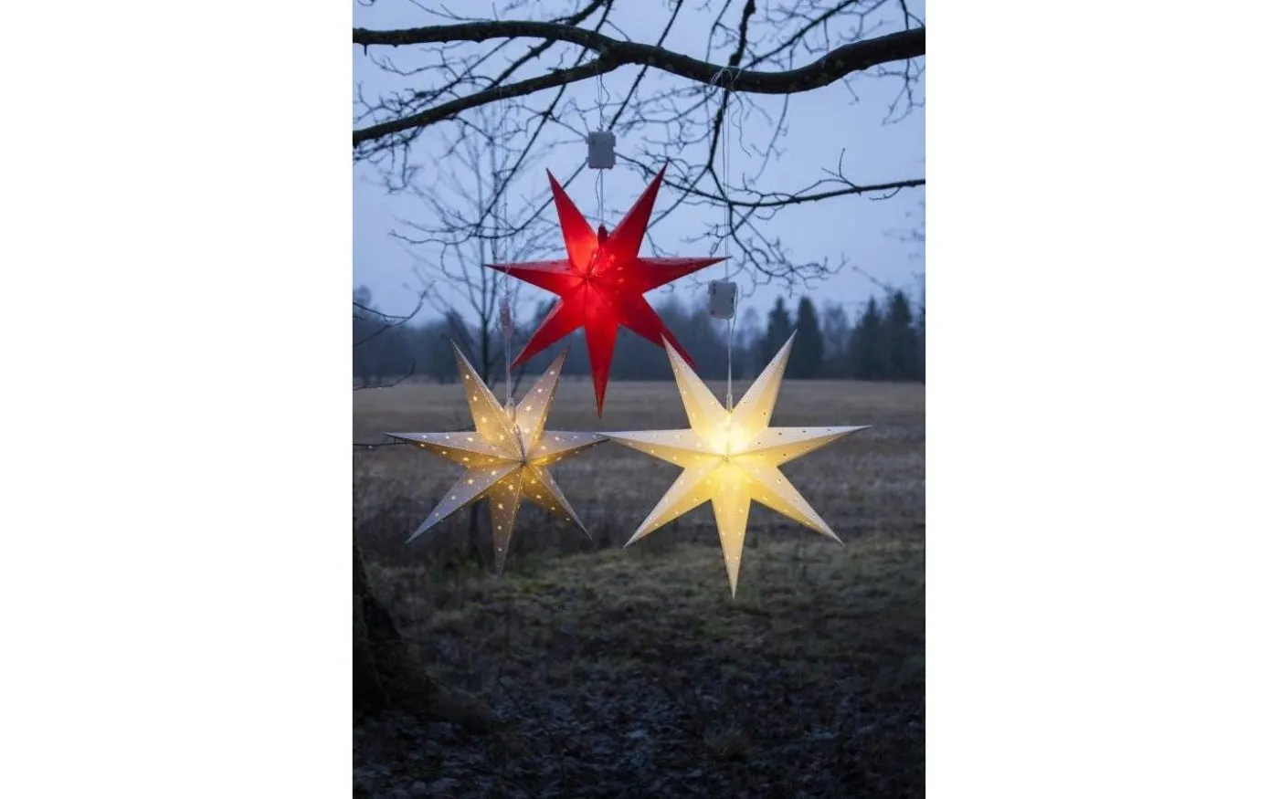 Vackra Alice, från Star Trading, är en batteridriven julstjärna med små stjärnmönster. Stjärnan är tillverkad i plast och är godkänd för utomhusbruk. Batteristjärnan har totalt 12 stycken små LED-lampor som lyser i ett mysigt, varmvitt ljussken.