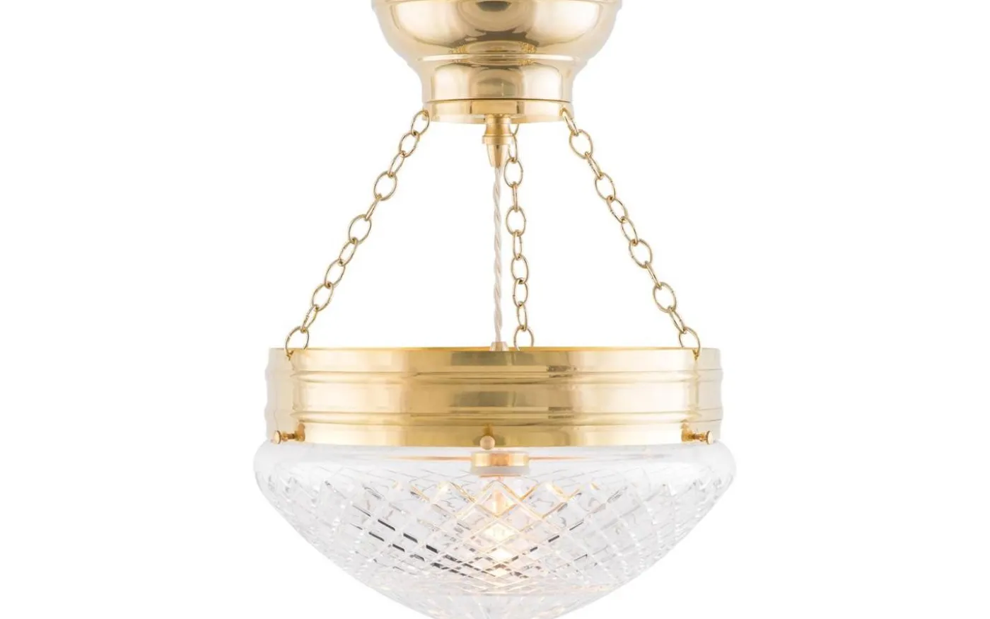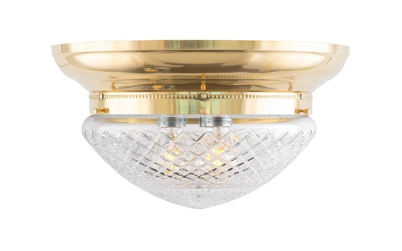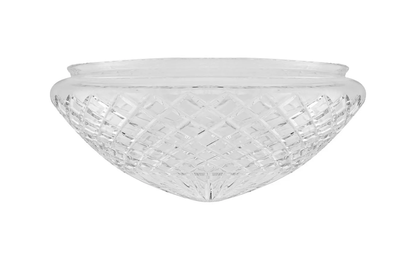 En klassisk kristallkupa i matterat klarglas med en slipad stjärna i toppen som ger ett mycket elegant och behagligt sken tillsammans med en ljuskälla av koltrådstyp. Detta droppformade glas förekom i vårt sortiment redan på 1890-talet.