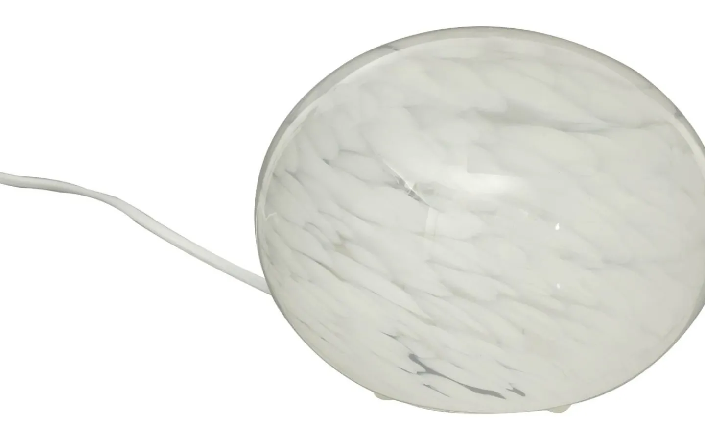 Globus bordslampa i vit prickigt glas med ljuskälla inuti glasbollen som ger ett dekorativt och bekvämt ljus. Max 25W E14 päronlampa, ingår ej. Sladd med mellanströmbrytare och stickpropp.