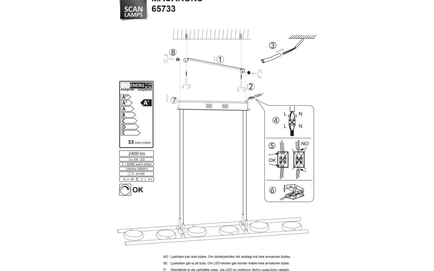 Be the first to review “Aneta Macarons Taklampa 90cm LED 6x5W 3000K Krom/Frost* Avlånga Taklampor” Avbryt svar