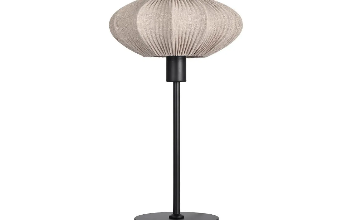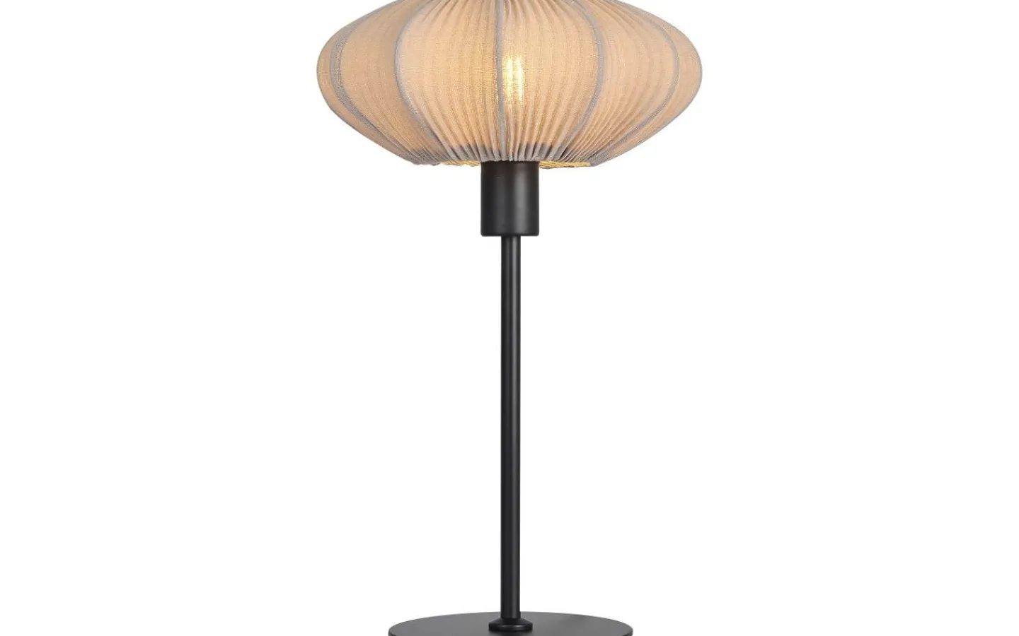 Mamsell bordslampa från Aneta har en stomme i metall och lampskärm i ett fin-plisserat stretchtyg som ger ett behagligt och något dämpat ljussken.