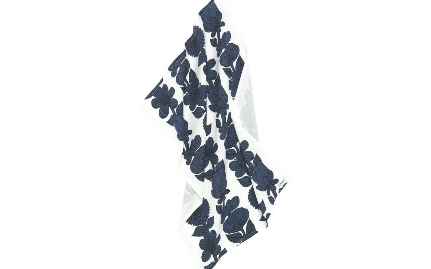 Härlig kökshandduk med vackert tryck. Kökshandduken är från Svanefors och är av 100% bomull i storleken 50×70 cm med hank i ena hörnan.