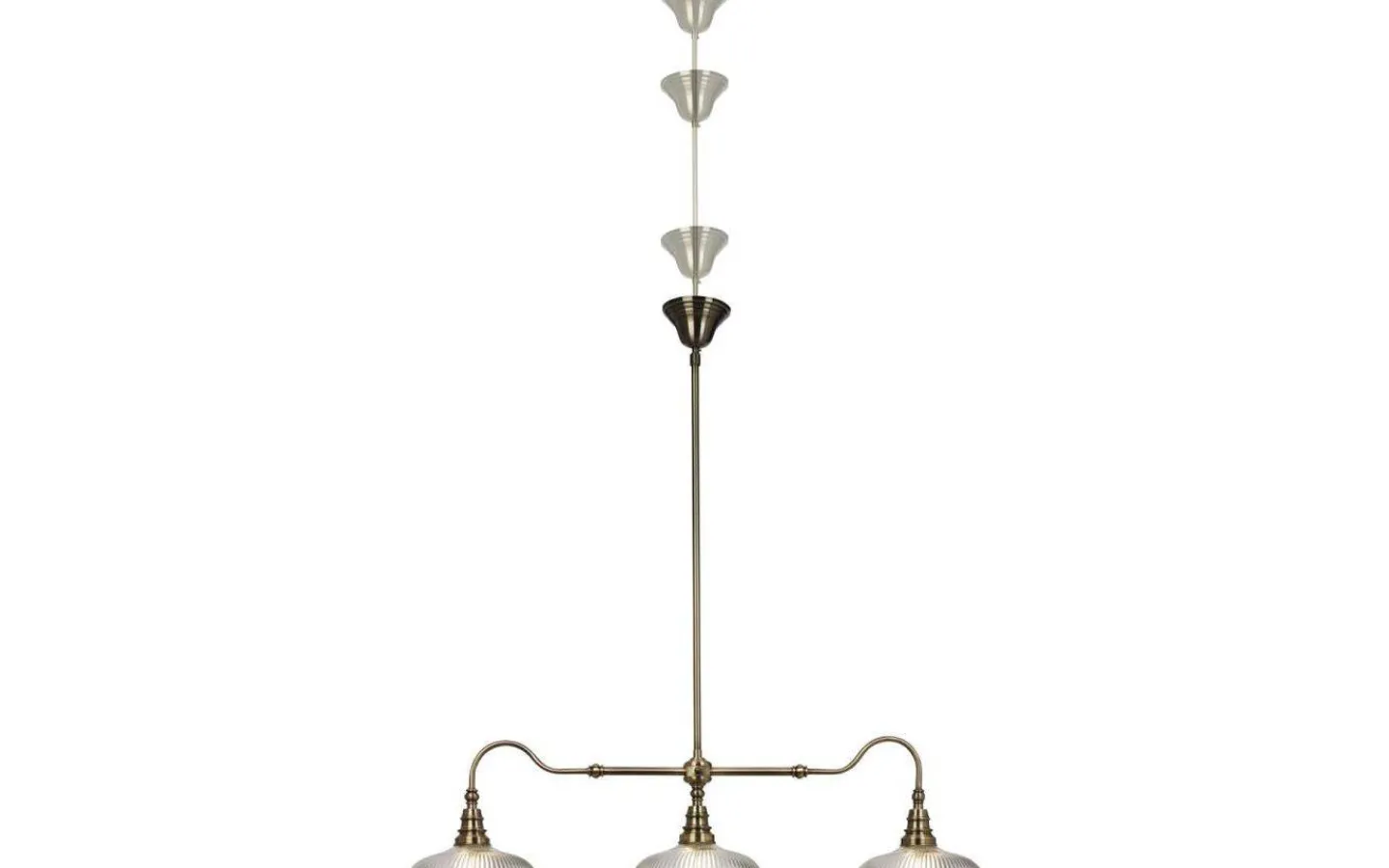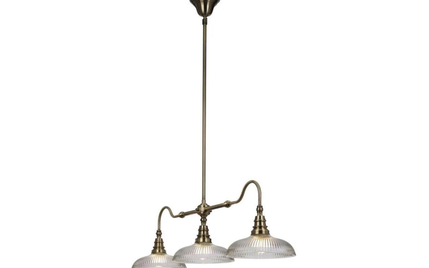 Snooker taklampa från Cottex är en taklampa har en tidlös design. Taklampan är av metall i en antik mässingsfärgad finish med matchande takkopp och har tre stycken glasskärmar med plats för mindre klotformade ljuskällor med E27 sockel.