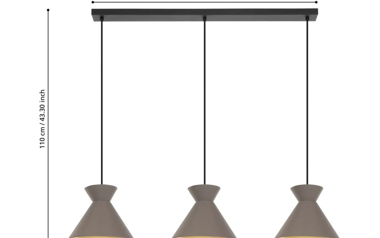 Den här taklampan, Nastasia, utmärker sig med sin eleganta och samtidigt enkla design. Med tre pendellampor i en distinkt konformad cappuccinofärgad skärm och inslag av mässingsfinish på insidan, kombinerar den modern estetik med en touch av klassisk charm. Den strömlinjeformade svarta stången kompletterar färgschemat och tillför en sofistikerad look. På grund av dess längd, 100 cm, är den lämplig över en matsalsbord eller köksö och ger riktad belysning samtidigt som den fungerar som en central inredningsdetalj. Den klassiska kombinationen av cappuccino och mässing gör att lampan kan integreras i många olika inredningsstilar.