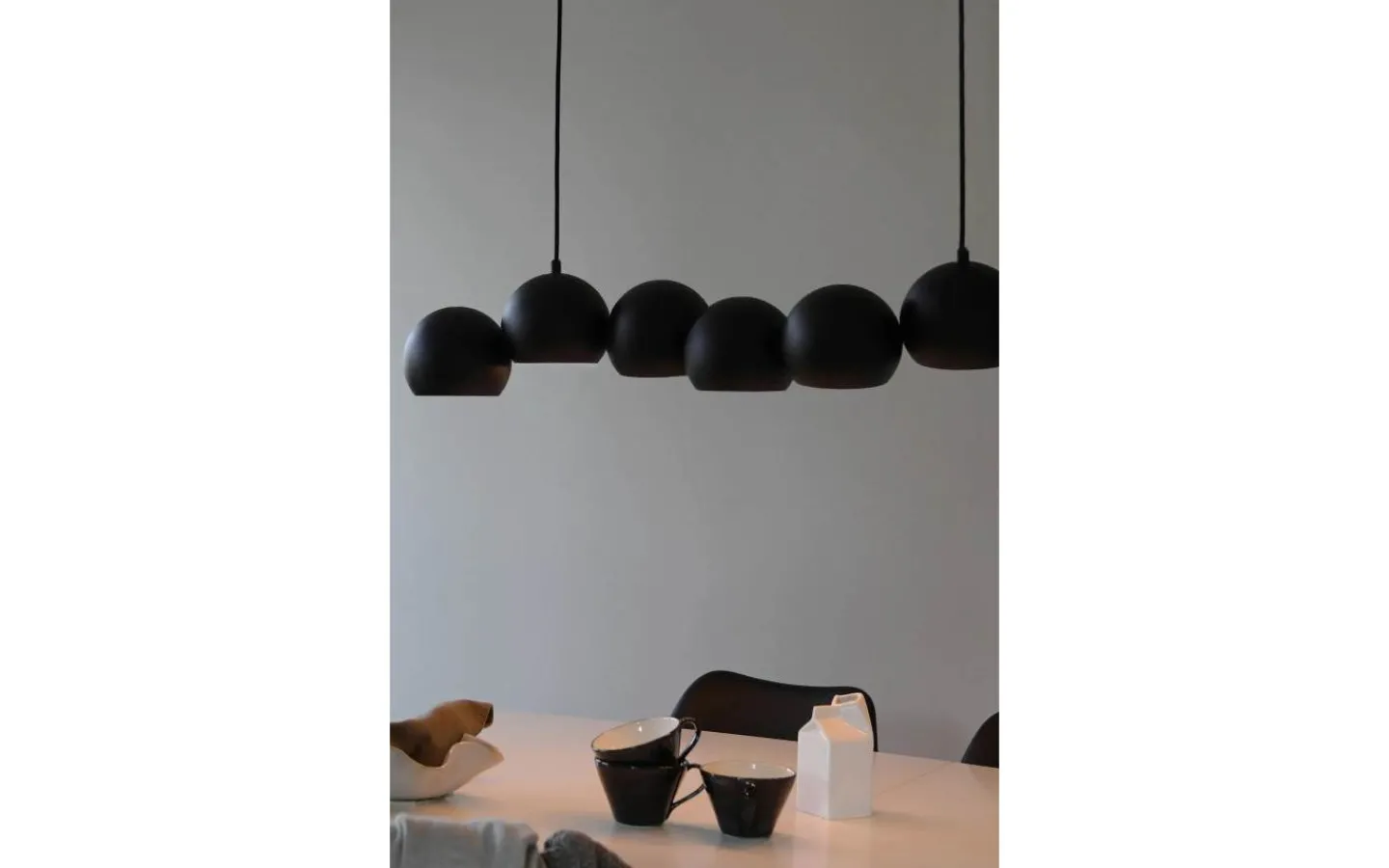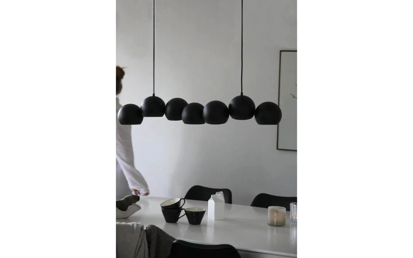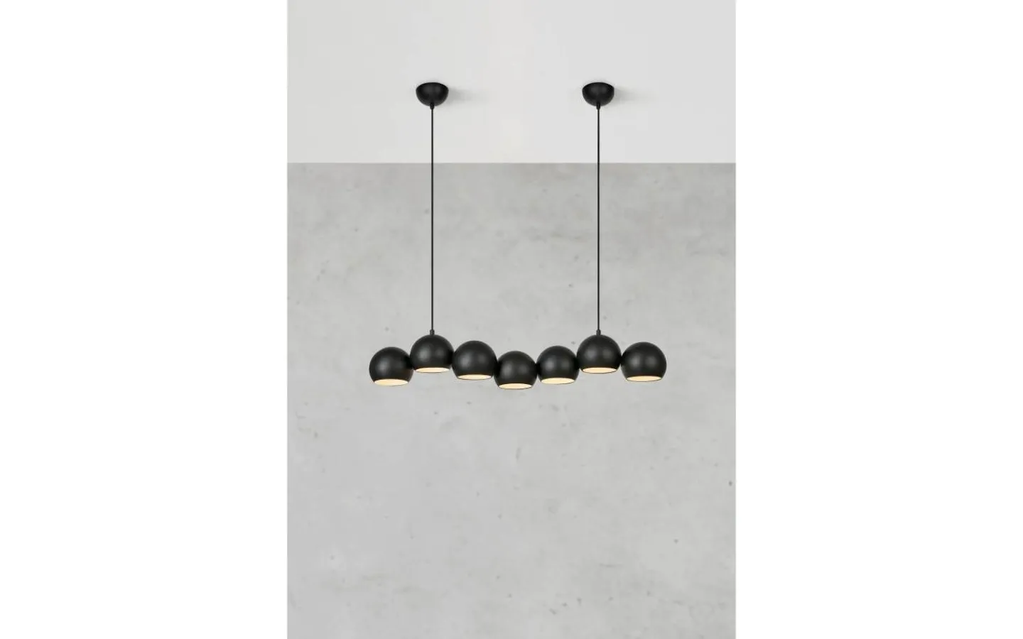 Cupolo från Markslöjd är en stilren och modern taklampa som kombinerar minimalistisk design med funktionell belysning. De sju lampkuporna är placerade på rad, vilket skapar en jämn och behaglig ljusspridning – perfekt över matbordet eller köksön.