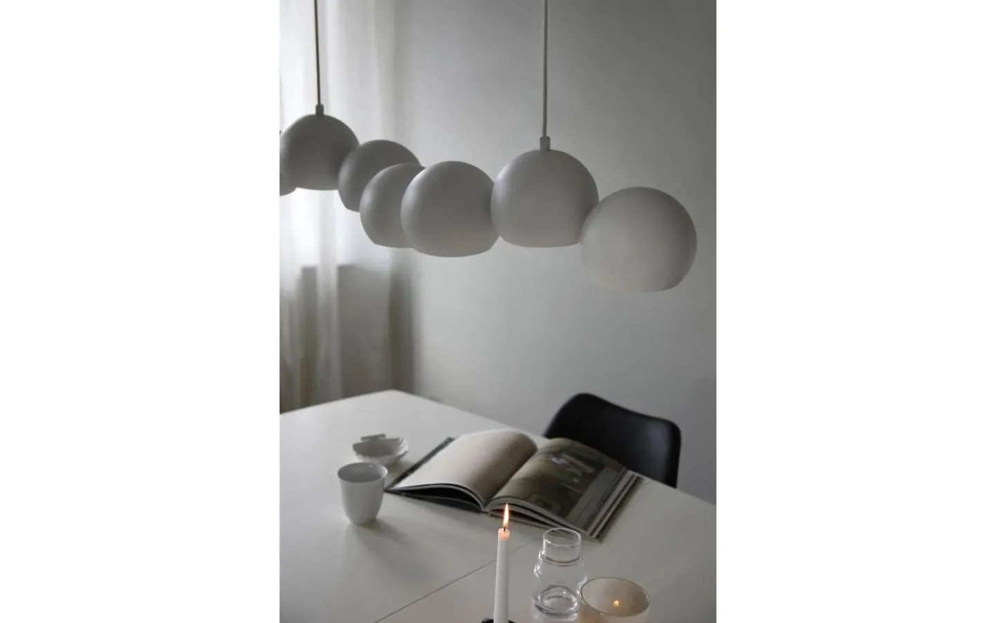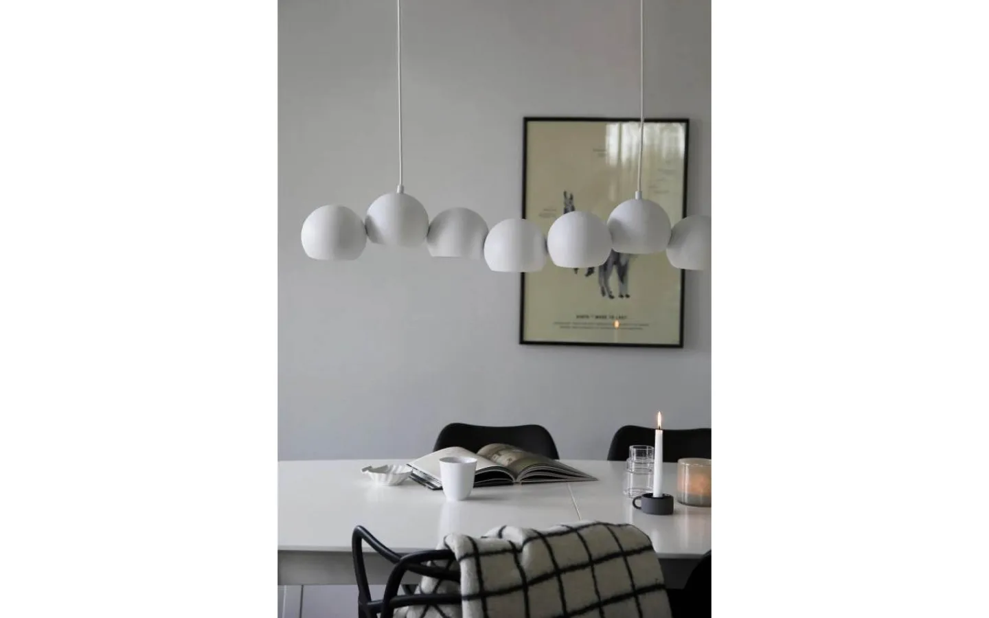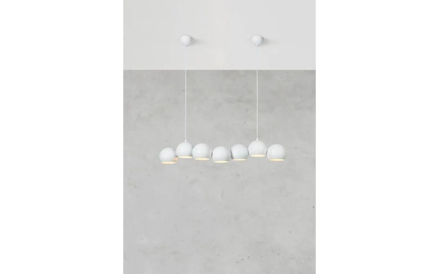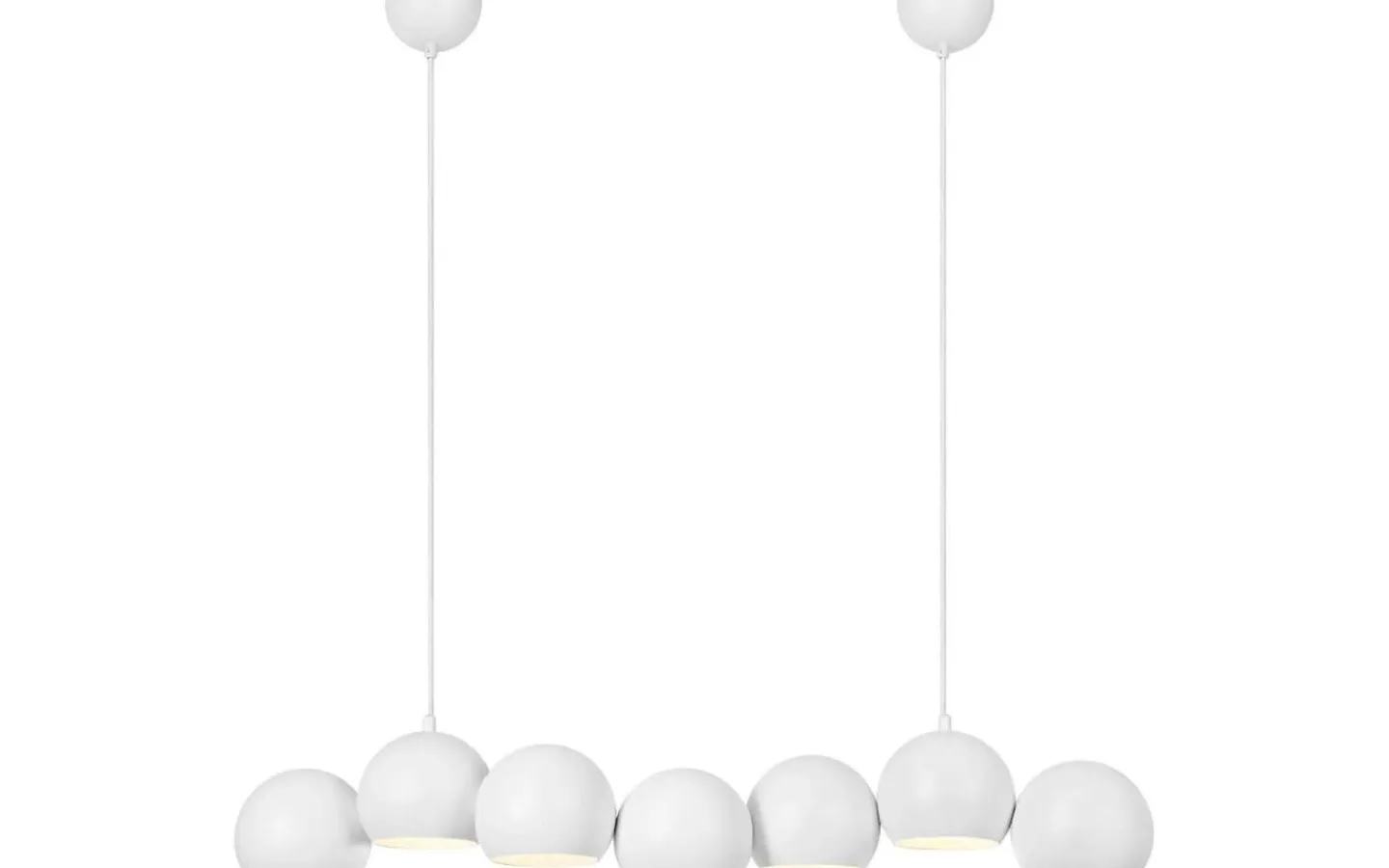 Cupolo från Markslöjd är en stilren och modern taklampa som kombinerar minimalistisk design med funktionell belysning. De sju lampkuporna är placerade på rad, vilket skapar en jämn och behaglig ljusspridning – perfekt över matbordet eller köksön.