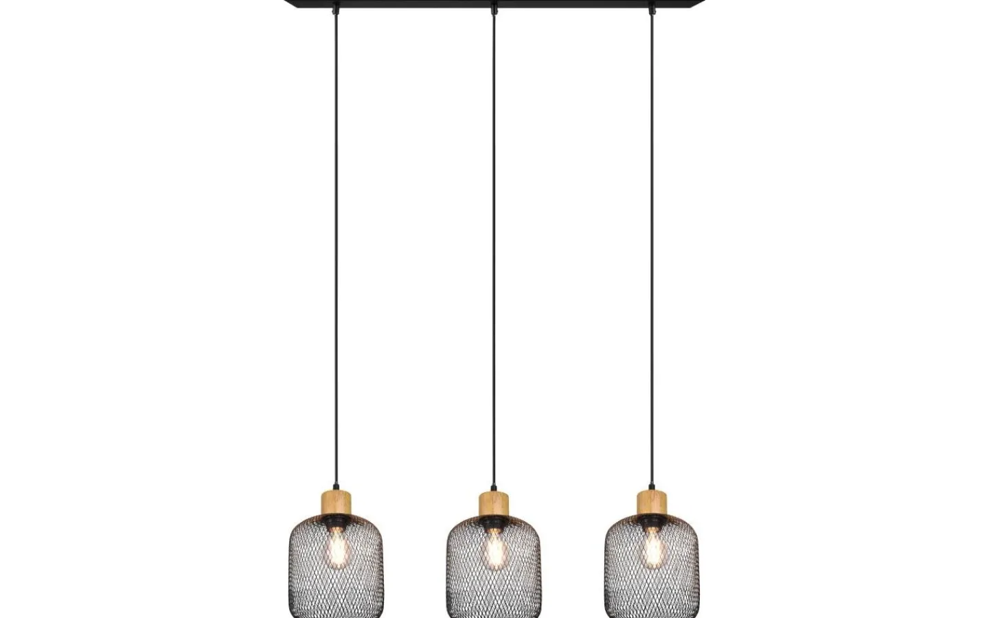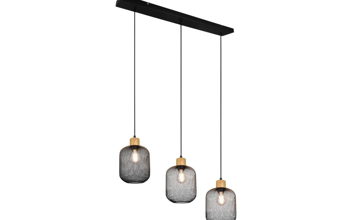 CALIMERO pendellampa kan mer än bara hänga upp! Den moderna materialmixen skapar en elegant och mysig atmosfär. De många små urskärningarna i lampskärmen skapar ett mönster av ljus och skugga som ger dekorativa ljusaccenter i ditt hem. Pendellampan ser bäst ut i matsalen eller vardagsrummet ovanför bordet. Lampskärmen är tillverkad av en metallraster i mattsvart och skapar, tillsammans med trädetaljerna, en modern vintage-look. För energibesparande belysning rekommenderas att använda en LED-lampa. Dessa är ett optimalt alternativ till konventionella halogenlampor och står för hög ljuskvalitet och energibesparingar på upp till 80 %. Dessutom hjälper LED-lampor dig att dra nytta av lång livslängd, låg värmeutveckling och samtidigt skydda miljön. Ljuskälla: exklusiv 3x E27 · max. 40W. Extra information: Justerbar i höjd, Takmontering, IP20, Lampa(or) ingår ej