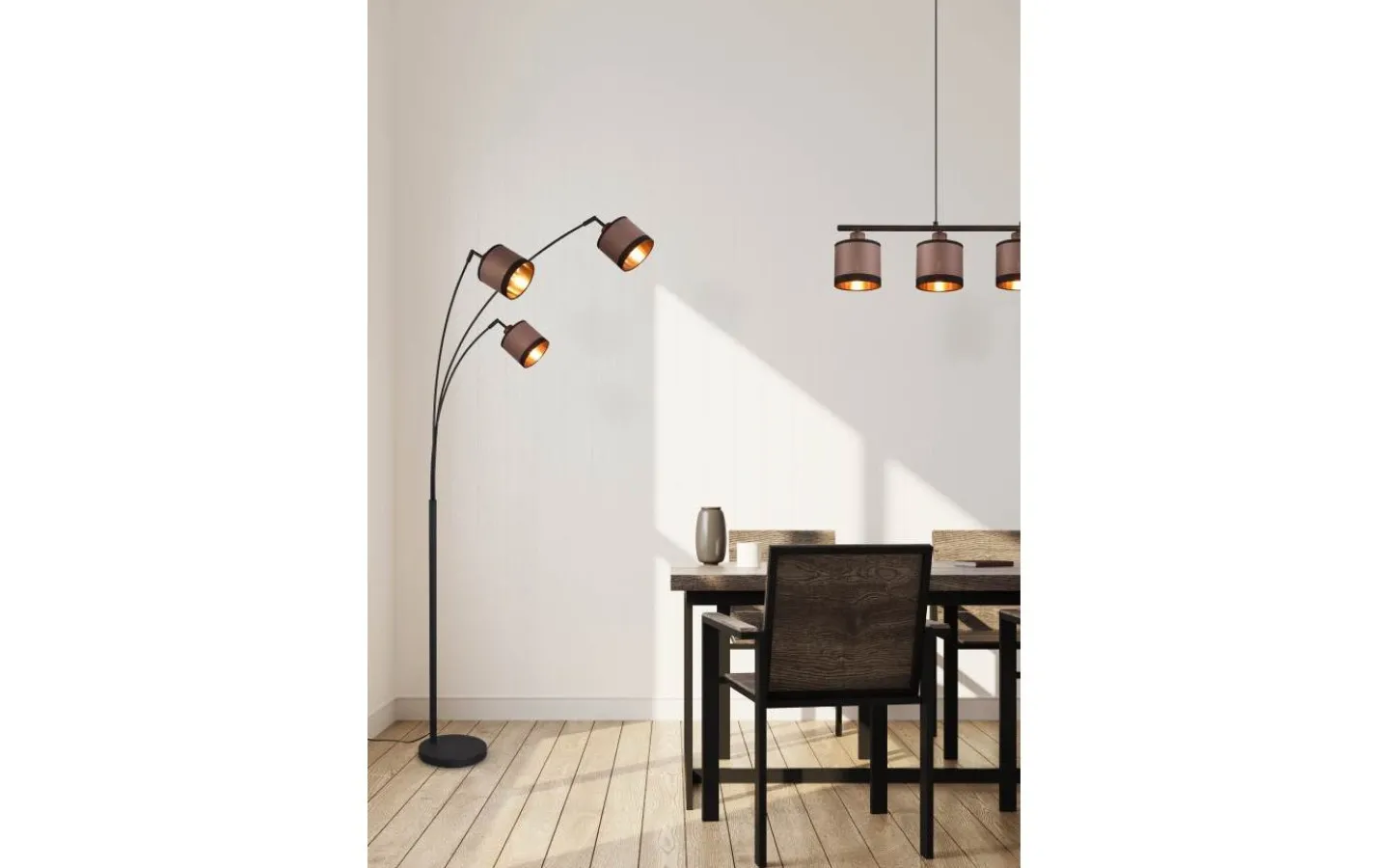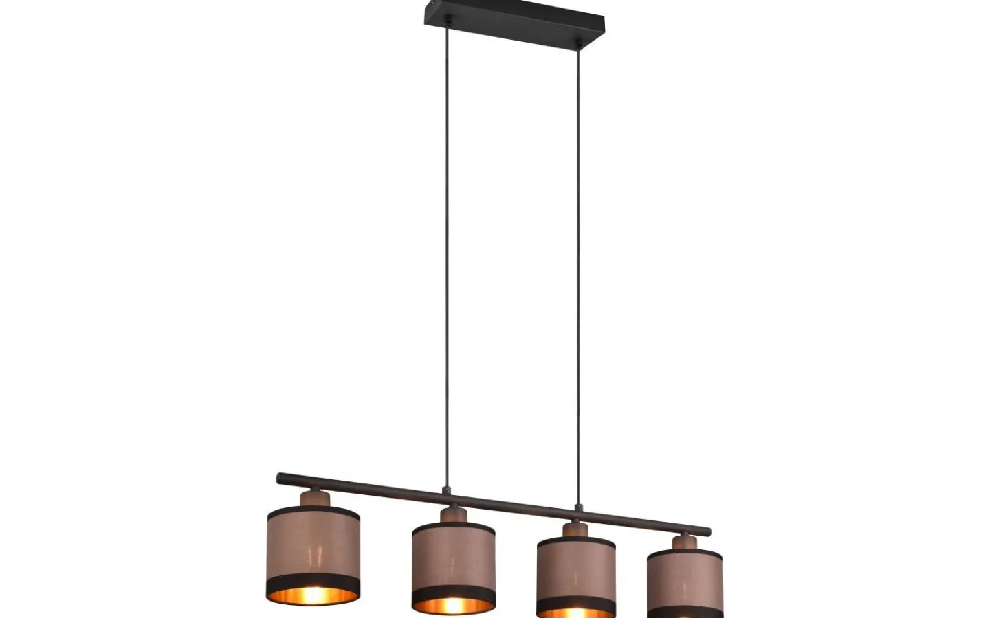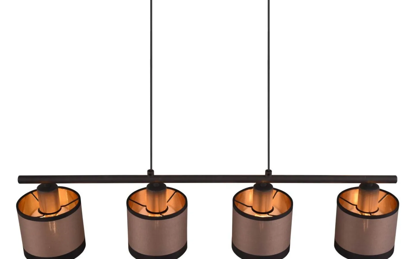 DAVOS armaturserie – varm känsla kombinerad med ljus! Kombinationen av cylindriska former och fint textiltyg utstrålar elegans och lysande harmoni. Placerad ovanför ett matbord eller en köksbänk frammanar den klassiska pendellampan ett lugnt belysningskoncept med mjuka accenter. Den behagliga ljusatmosfären inbjuder till att dröja kvar och förvandlar din matplats till en ny favoritplats. De eleganta färgnyanserna i mattsvart och taupe ger ditt hem en individuell touch. Skärmens guldfärgade insida betonar också wow-effekten. För modern och pålitlig belysning rekommenderas en LED-lampa. Den erbjuder hög ljuskvalitet, är mångsidig och övertygar med jämn belysning. Dess långa livslängd och låga värmeutveckling gör den till det perfekta valet för en mängd olika användningsområden. Ljuskälla: exklusiv 4x E14 · max. 10W. Extra information: Justerbar i höjd, IP20, Lampa(or) ingår ej