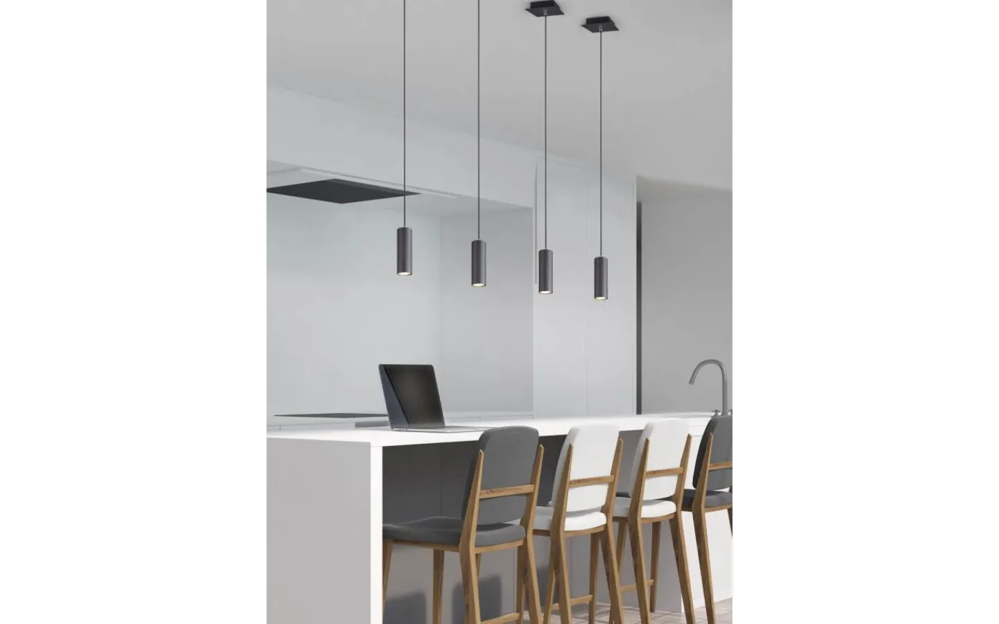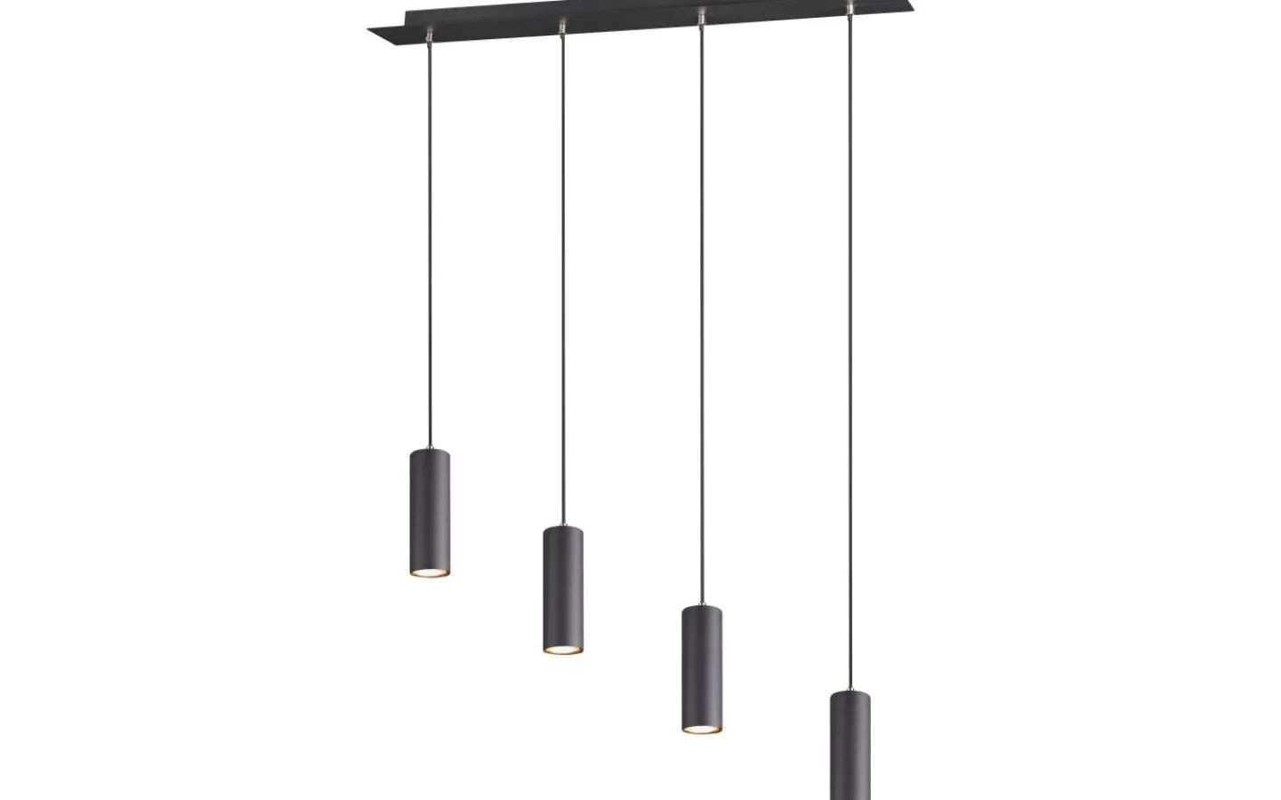 MARLEY-pendellampan är inte bara praktisk i form och funktion, utan framför allt en sak: helt enkelt vacker! Lampan har en diskret design och imponerar med sitt högkvalitativa hantverk. Oavsett om den är i köket eller i vardagsrummet: MARLEY med fyra lampor är mångsidig och kan enkelt kombineras med olika inredningsstilar. Pendellampan har en bredd på 75 cm och är särskilt effektiv när den monteras mitt i en matplats ovanför ett avlångt matbord. Vid installationen kan upphängningslängderna för de fyra pendellamporna justeras individuellt upp till en längd på 150 cm. Pendeln är designad i mattsvart och kan därför elegant komplettera och fullända moderna färgkoncept. För modern och pålitlig belysning rekommenderas användning av en LED-lampa. Den erbjuder hög ljuskvalitet, är mångsidig och övertygar med jämn belysning. Dess långa livslängd och låga värmeutveckling gör den till det perfekta valet för en mängd olika användningsområden. Ljuskälla: exklusiv 4x GU10 · max. 35W. Extra information: Justerbar i höjd, Takmontering, IP20, Lampa(or) ingår ej