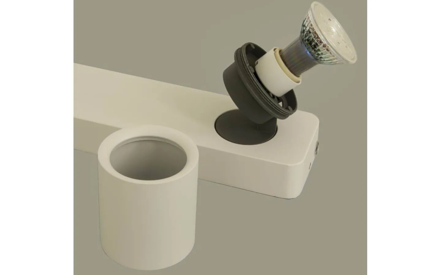 ROLLO takspot i vitlackerad metall med grafitgrå detaljer, för 3x 35W GU10 (ingår ej) Bygelupphäng och kopplingsplint. Modern spot med mjuka former, gör sig utmärkt i sovrummet.