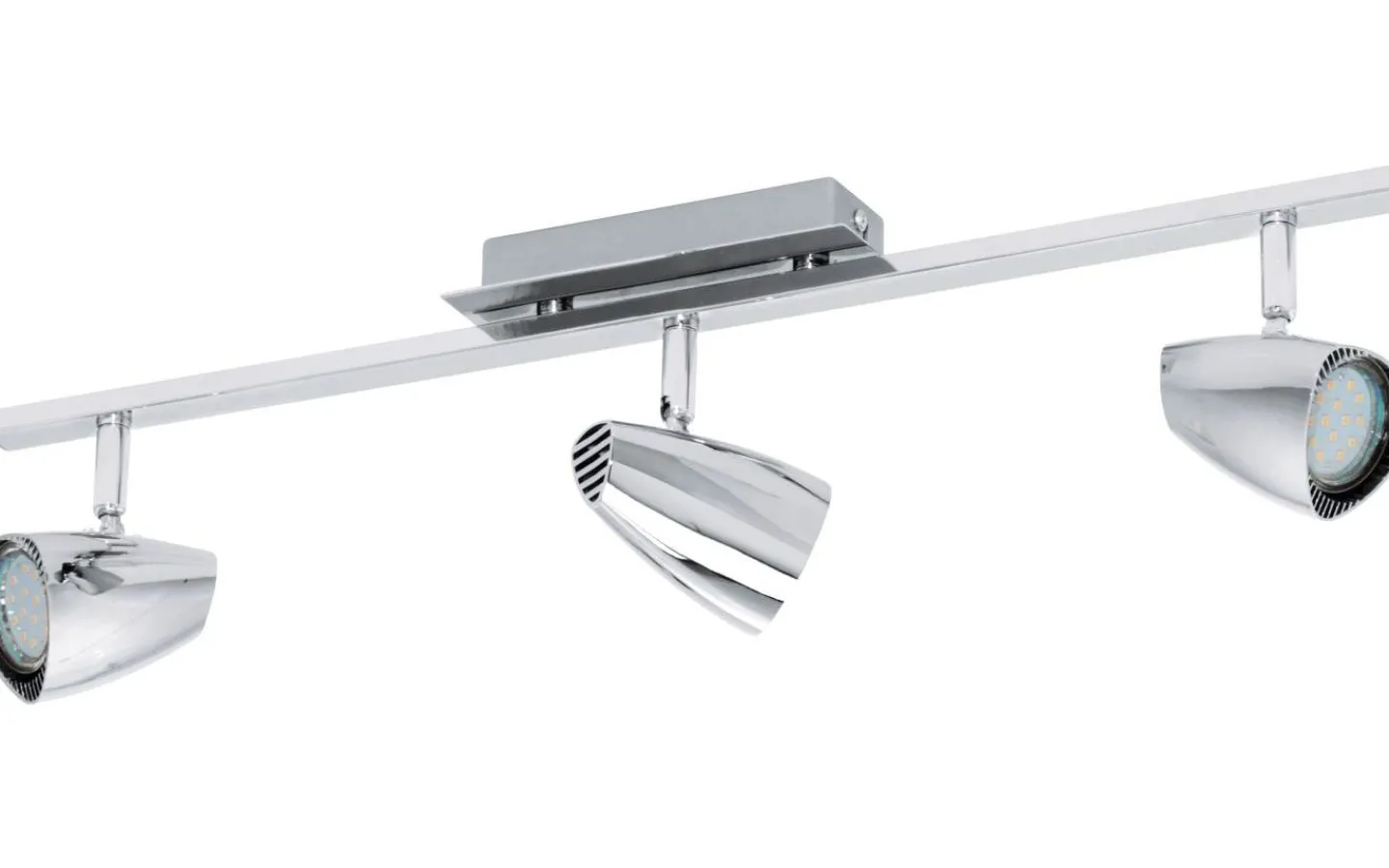 Denna tre-huvud spot från serien CORBERA är gjord av förkromat stål och plast och är utrustad med tre GU10-LED-lampor för ett varmvitt ljus.