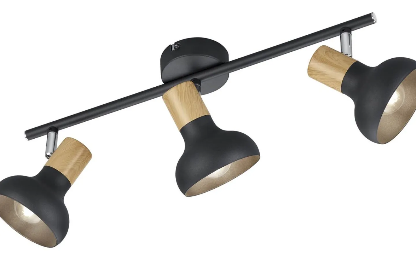 Skapa behagliga ljusaccenter med spotlights från LATIKA-serien och fördjupa ditt vardagsrum i en mysig atmosfär. Oavsett om den används ensam eller i kombination, som huvudljuskälla eller som riktad accentbelysning för specifika områden, kan spotlighten med tre lampor användas på en mängd olika sätt och ger ditt rum en varm känsla tack vare tränyanserna. Kombinationen av svart matt metall och metall med träliknande utseende ger ditt hem en mysig karaktär som enkelt kan kombineras med befintliga interiörer. För modern och pålitlig belysning rekommenderas en LED-lampa. Den erbjuder hög ljuskvalitet, är mångsidig och övertygar med jämn belysning. Dess långa livslängd och låga värmeutveckling gör den till det perfekta valet för en mängd olika användningsområden. Ljuskälla: exklusiv 3x E14 · max. 10W. Extra information: Takmontering, IP20, Lampa(or) ingår ej
