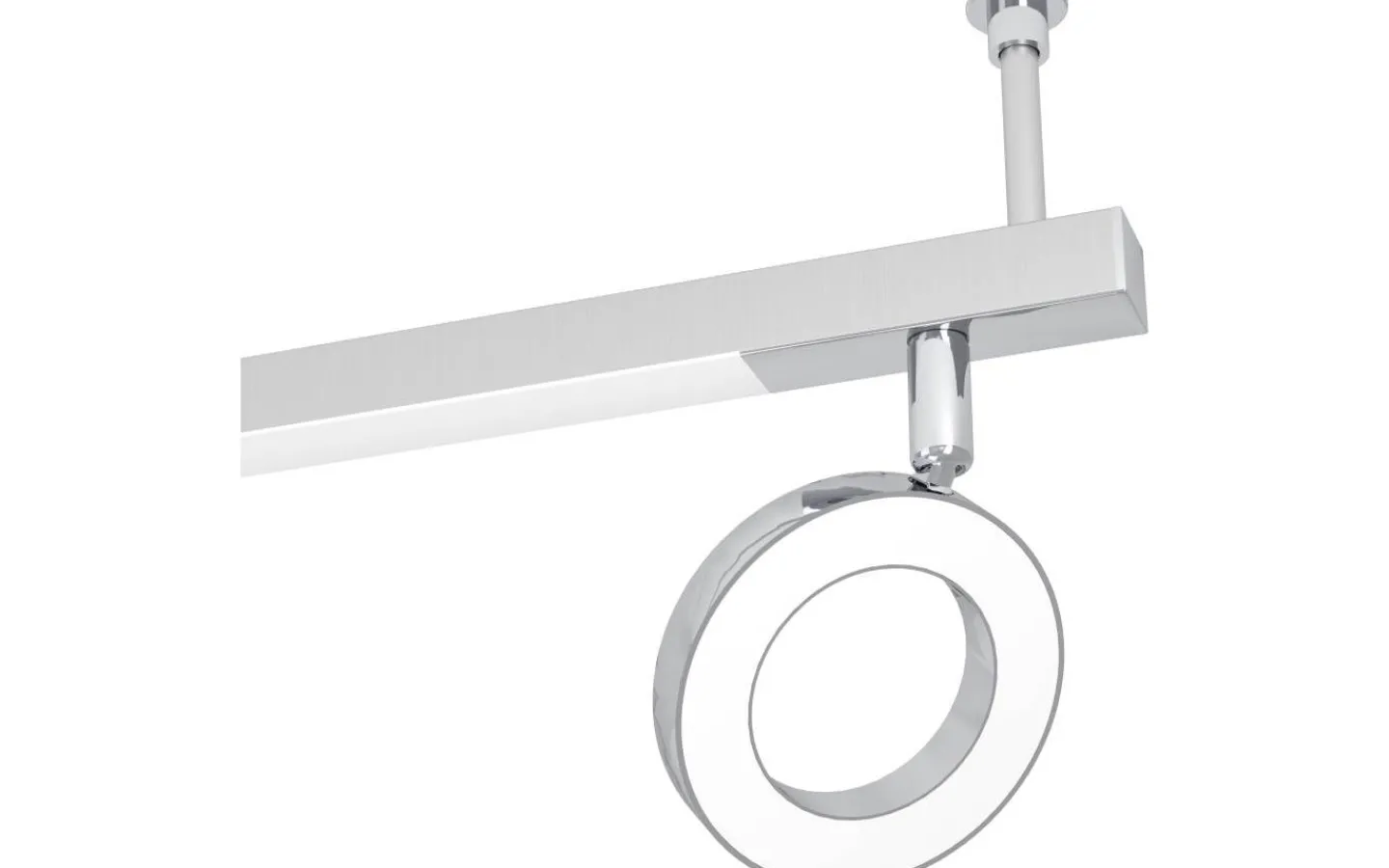 CARDILLIO 1 LED-taklampa är gjord av förkromad metall och aluminium och har tre armar med sex ringformade spotlights. De två yttre armarna är justerbara och kan arrangeras och fixeras i taket i olika lägen. Taklampan har även tre ljuspaneler i armarna. De integrerade lysdioderna under satinplasthöljena ger ett behagligt varmvitt ljus. Den klassiska takspotlighten smälter sömlöst med trendiga moderna stilar, och de justerbara lamporna låter dig skapa fokuserad belysning, oavsett om det är i köket, vardagsrummet, sovrummet, hallen eller matsalen.