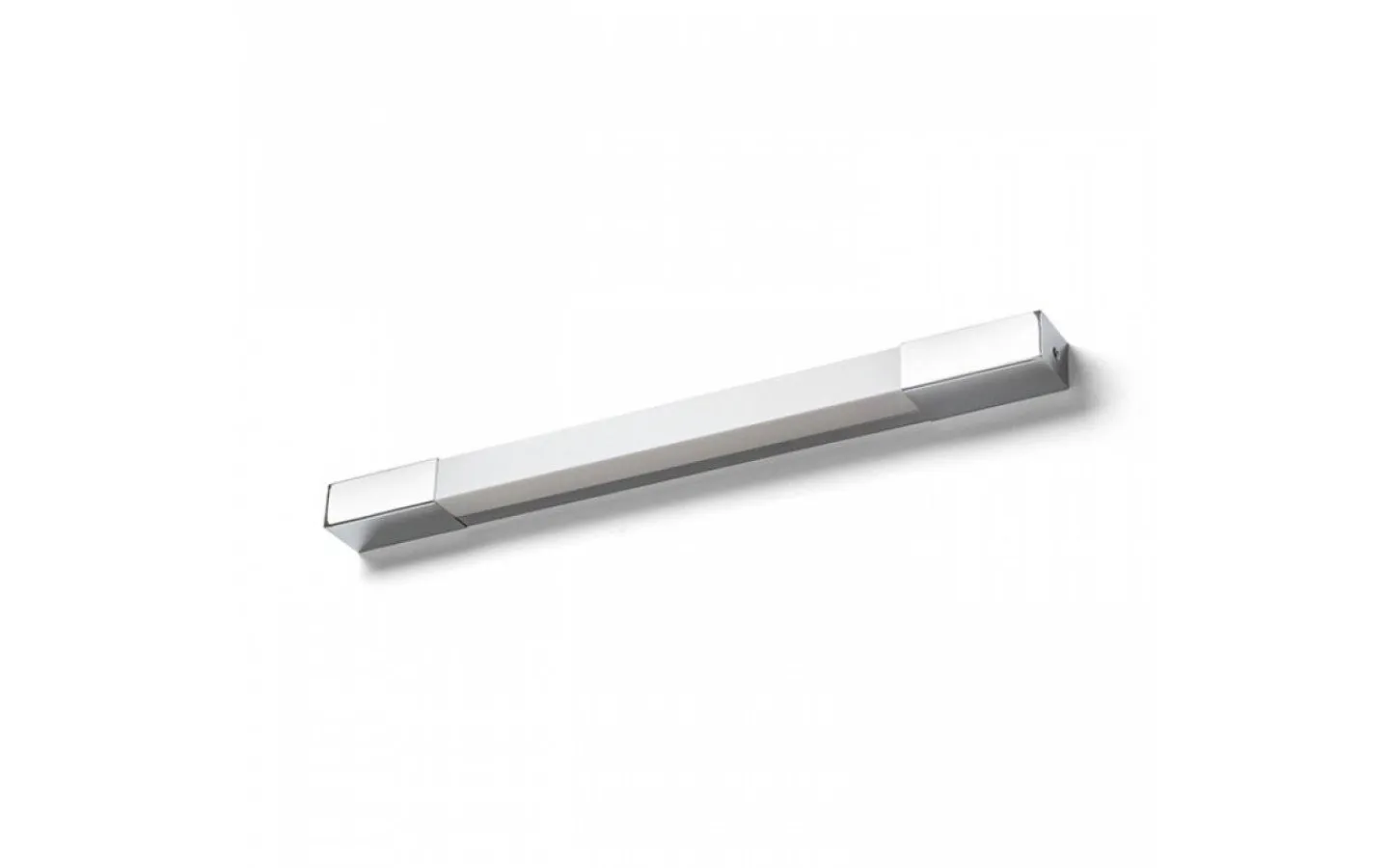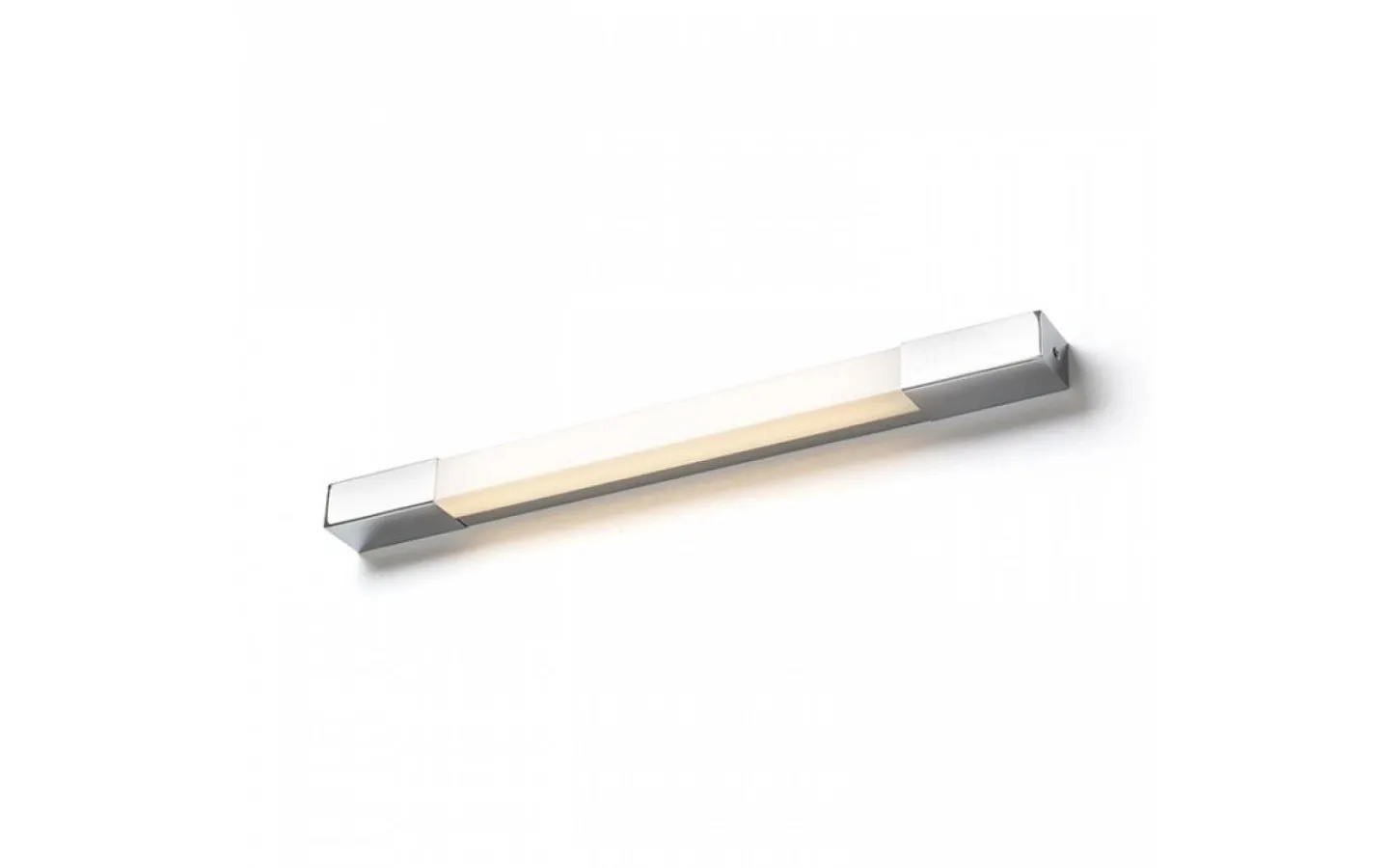 Linjär badrumslampa med inbyggd LED och detaljer i krom, lämplig ovanför en spegel.