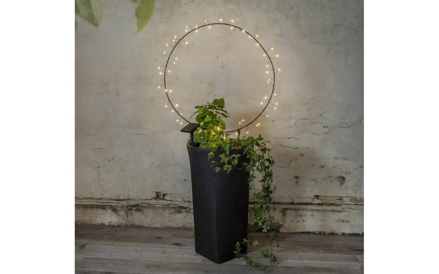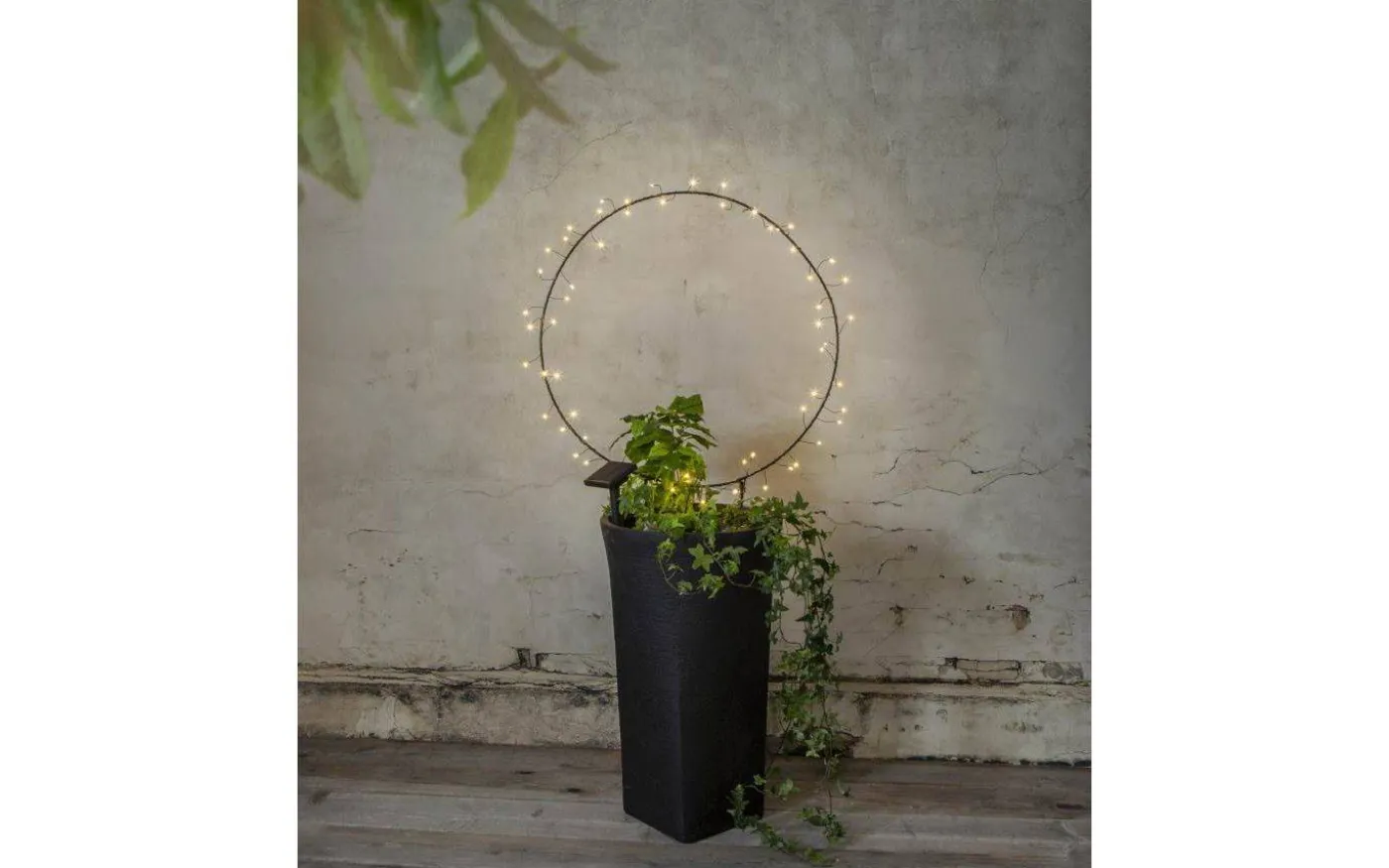 Barlumi solcellslampa från Star Trading är en härlig trädgårdsdekoration i form av en 40cm cirkel med små ljuspunkter som lyser runt om cirkeln. Barlumi solcellslampa har ett stativ som gör den lättplacerad i en plantering i trädgården eller i en kruka på balkongen eller terrassen.