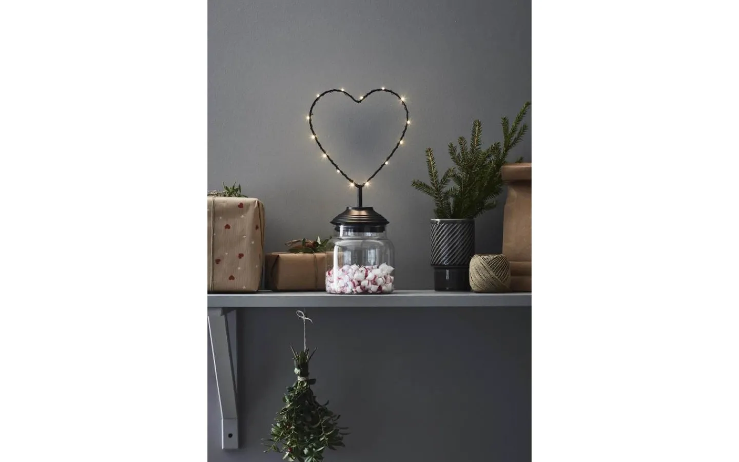 Sweetie batteridriven bordsdekoration från Markslöjd är en härlig och mysig bordsdekoration i form av en glasburk med svart lock av metall. På locket sitter ett hjärta av metall invirat med en ljusslinga med totalt 15st ljuspunkter som lyser i härligt varmvitt ljussken. Fyll glasburken med exempelvis små julgranskulor, julgodis eller nötter och skapa den där lilla extra julkänslan!