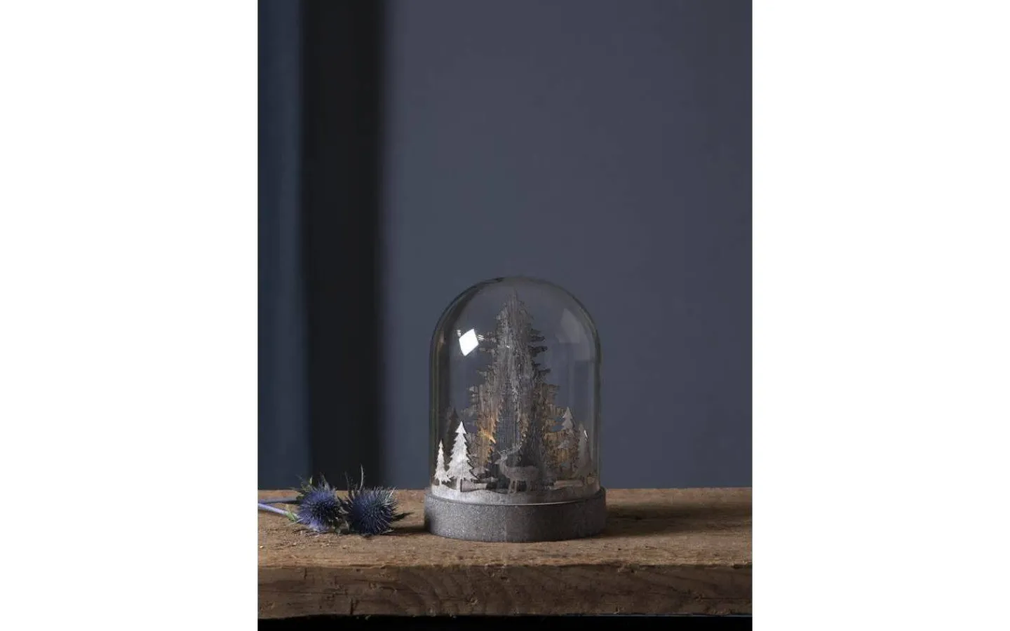 Lykta kupol med ett hus. Kupolen har även en inbyggd timerfunktion som gör det enkelt att ställa in när dem skall lysa. Ljuset i lyktan drivs med 3 st AA-batterier, dessa säljes separat – se under fliken ”Köp Till”.