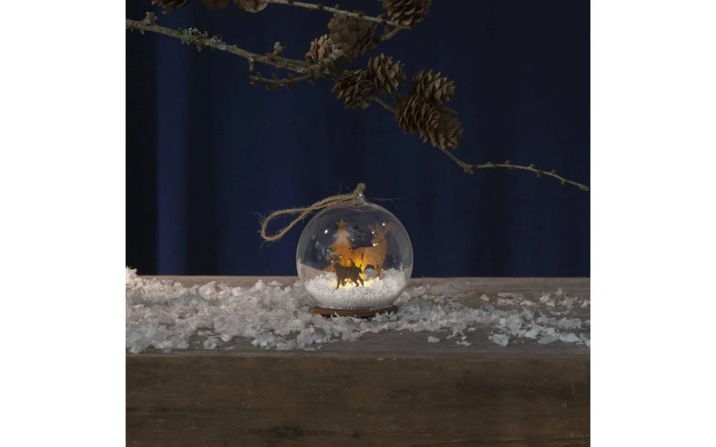 Fin kula med lazer cut julmotiv för inomhusbruk. Kulan har en ljuskälla och fina juldetaljer. Dekorera hemmet för en härlig julkänsla.
