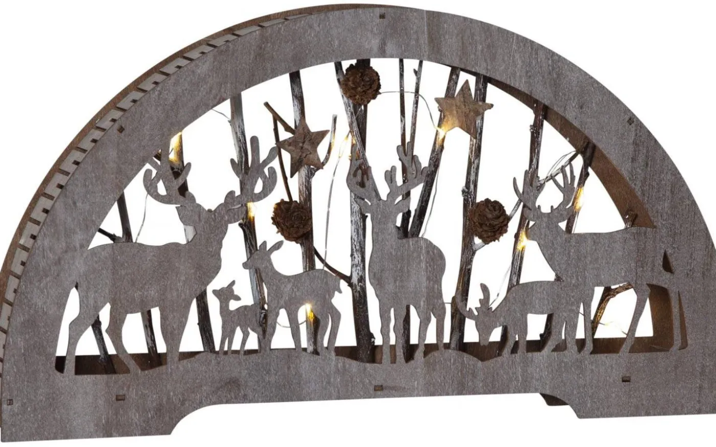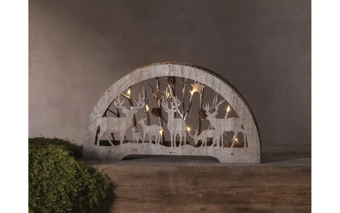 Dekorativ lazer cut ljusstake med julmotiv. Ljusstaken har 6 stycken ljuskällor och fina detaljer. Drivs av 2 stycken AA batterier. Placera på en skänk eller i ett fönster för en härlig julkänsla.