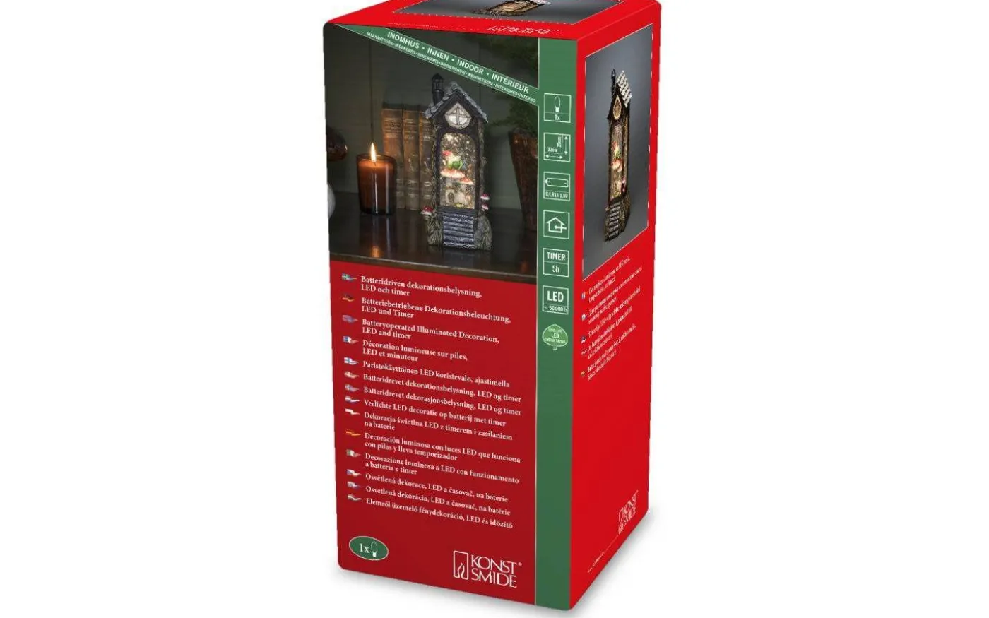 Glittrande vattenfylld lykta från Konstsmide som passar perfekt på många platser i ditt hem för att uppnå en riktig härlig julkänsla. När produkten är påslagen rör sig vätskan och glittret runt och skapar en magisk effekt.