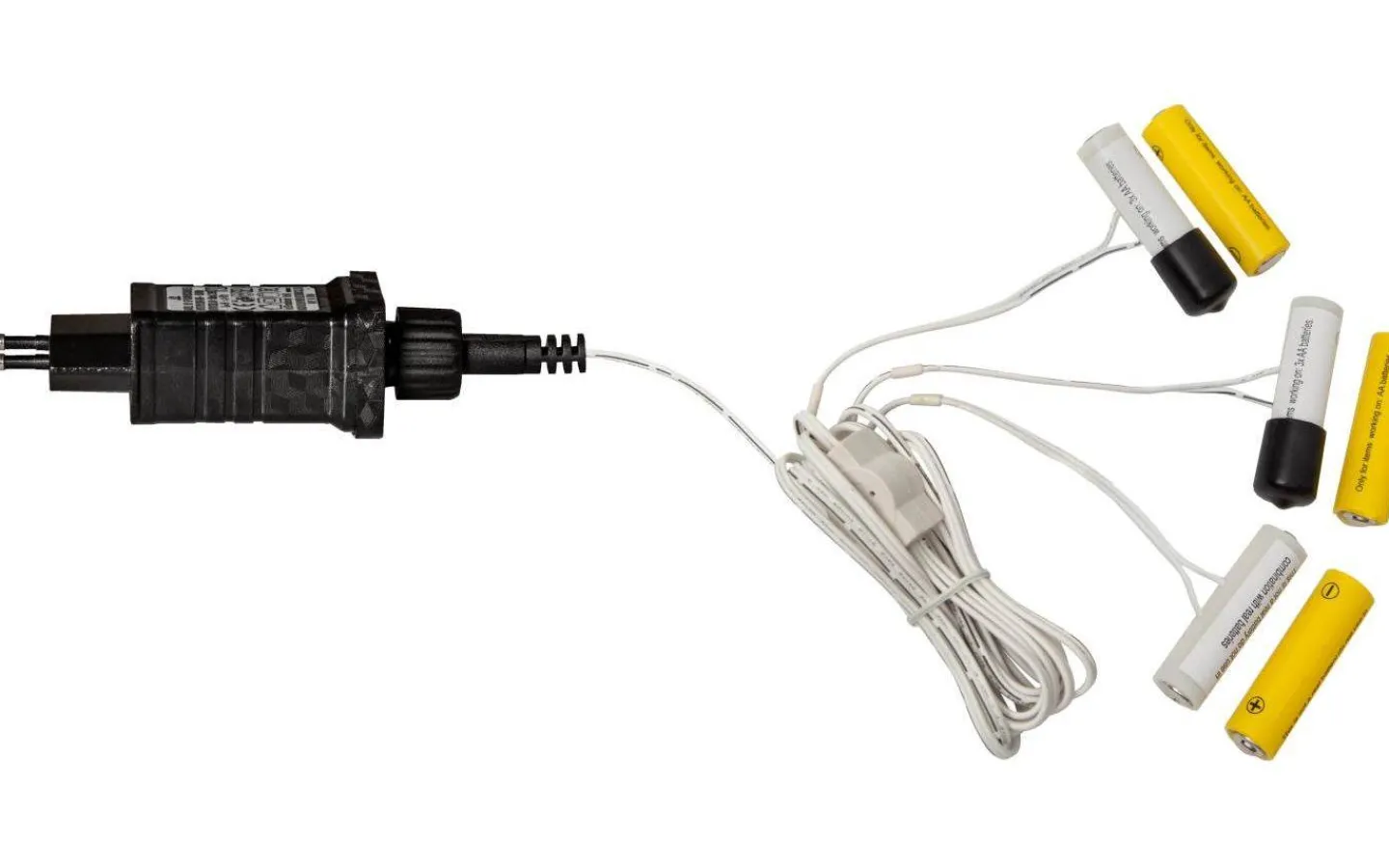 Batterieliminatorn är avsedd till produkter som drivs med 2xAA och har tre utgångar så att du enkelt och smidigt kan använda eliminatorn till tre olika batteridrivna produkter.