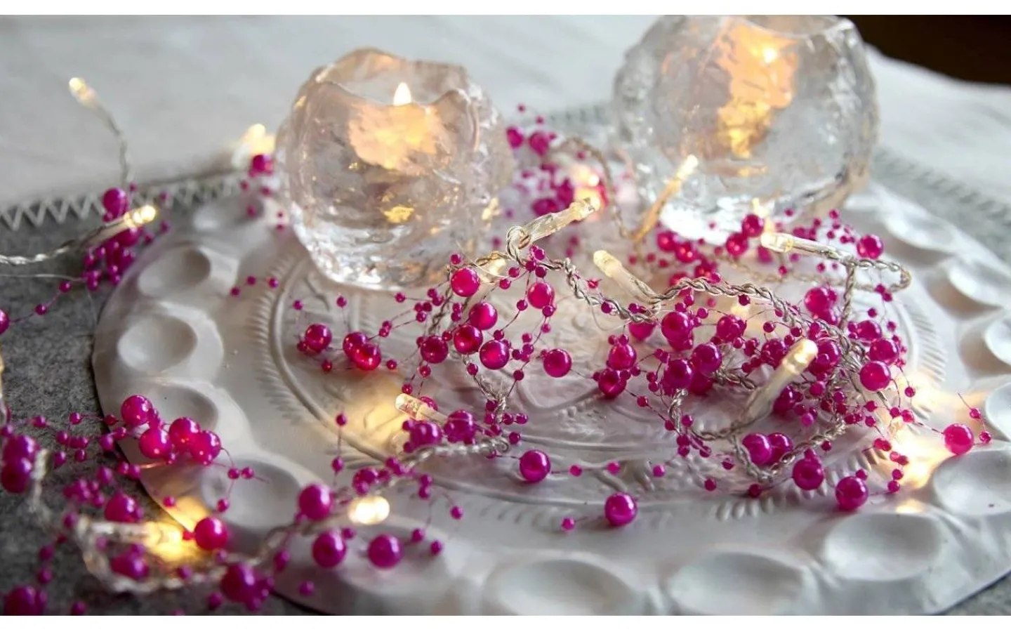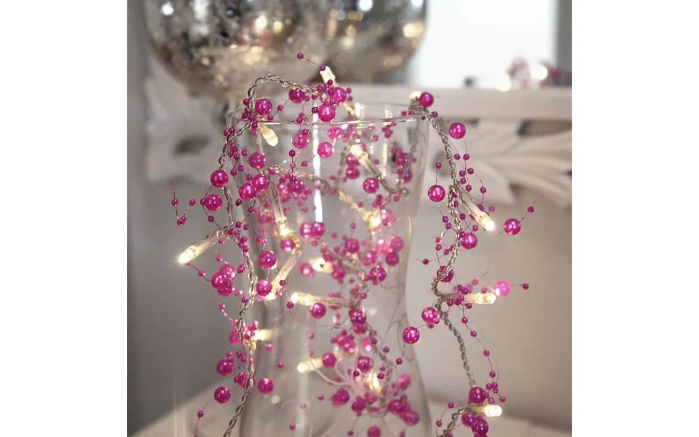 Supervacker ljusslinga i LED med vackra pärlor. Slingan har inbyggd timer och drivs med 3st AA-batterier, dessa medföljer ej.