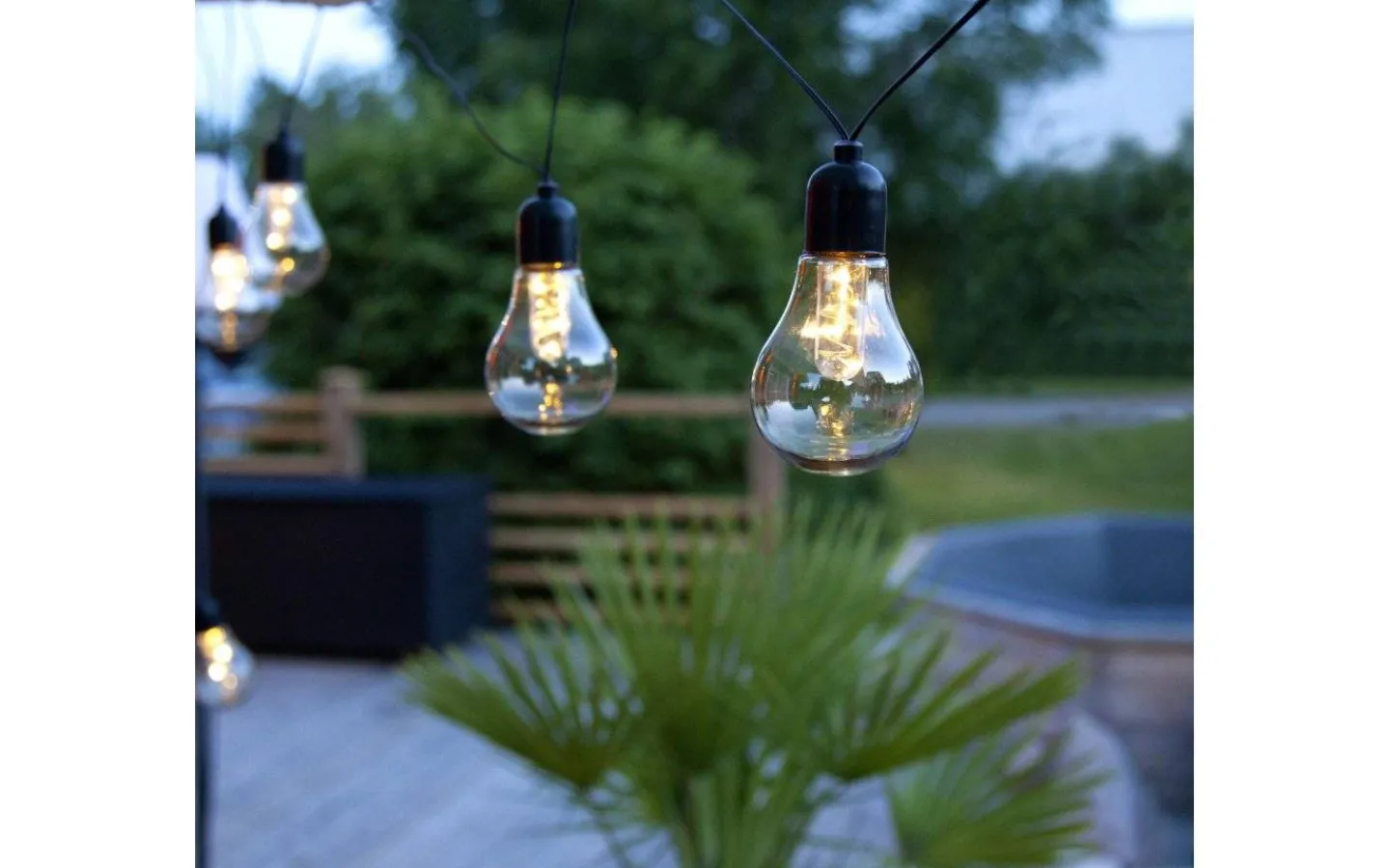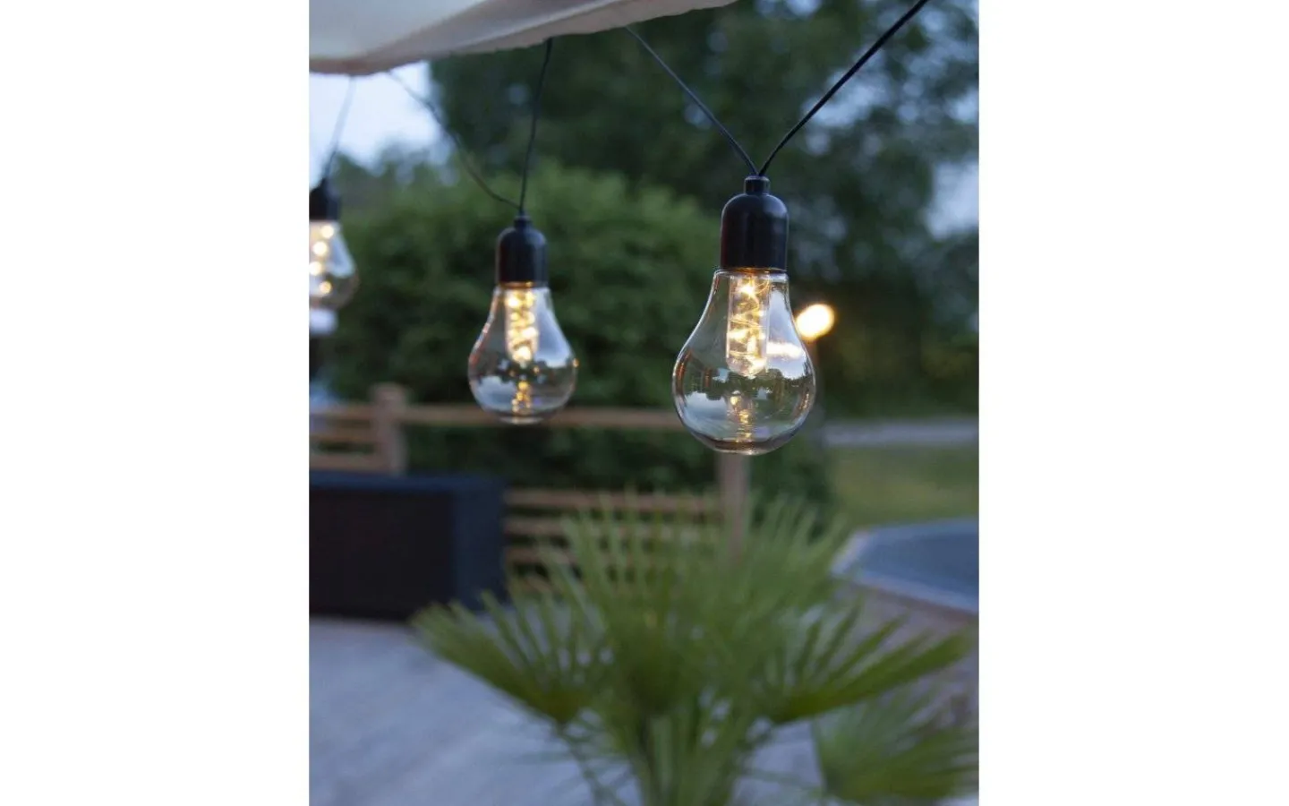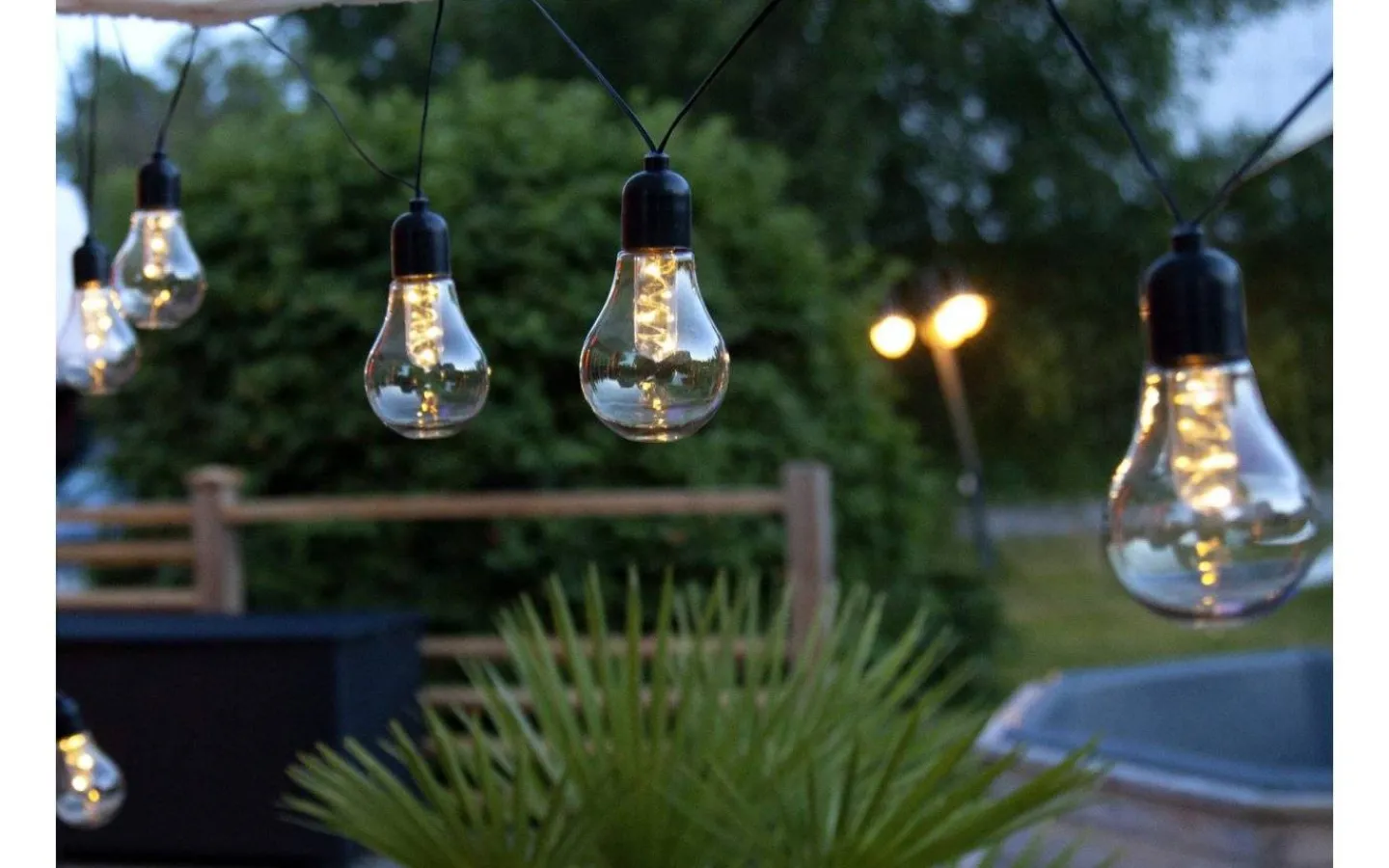 Häng slingan som en mysbelysning i barnrummet eller höj stämningen på kräftskivan, examensfesten eller grillpartyt med denna fina ljusslinga! Denna batteridrivna ljusslinga har 10 lampor som lyser med ett varmvitt ljus. För både inomhus och utomhusbruk.