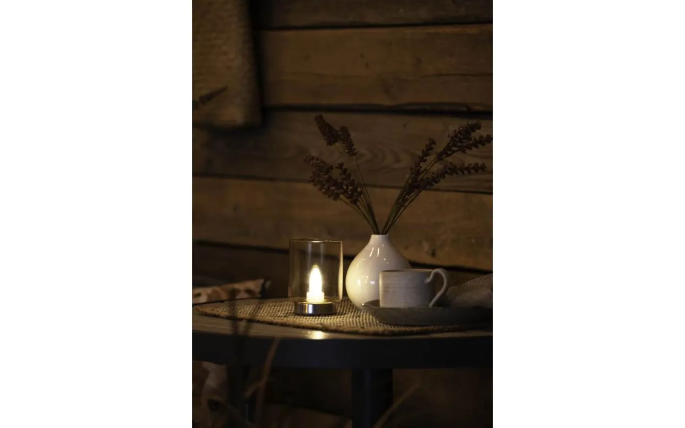 Batty ljuslykta från välkända Konstsmide är en uppladdningsbar ljuslykta med inbyggd dimmerfunktion. Ljuskällan i LED lyser upp i ett härligt varmvitt ljussken och skapar en härlig mysfaktor. Ljuslyktan går att ställa i tre olika lägen, 100% ljussken, 50% ljussken och endast svagt flammande ljus.