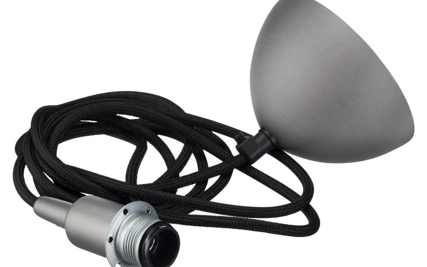 Sladdställ med E14-sockel och takkopp som passar till Gloria glaskupa, från Belid. Denna modell har oxidgrått upphäng och svart kabel. Du fäster enkelt sladdstället i glaset genom att föra sockeln genom hålet i glaskupan och sen skruva fast ringfästet på sockeln inifrån kupan.