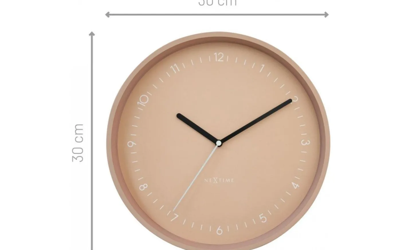 Tystgående väggklocka. Mått: Ø30 cm. Material: Aluminium. Färg: Rosa. Batteri: 1 AA (ingår inte) NeXtimes tystgående väggklocka Berlin (30 cm) är en modern och snygg klocka designad av Jette Scheib. Klockan har subtila detaljer i ett matt aluminiumhölje med matchande färgskiva i trendig färg. Denna klocka använder 1 x AA-batteri (ingår ej). Mått: Ø30 cm. Material: Aluminium. Batteri: 1 AA (ingår ej).