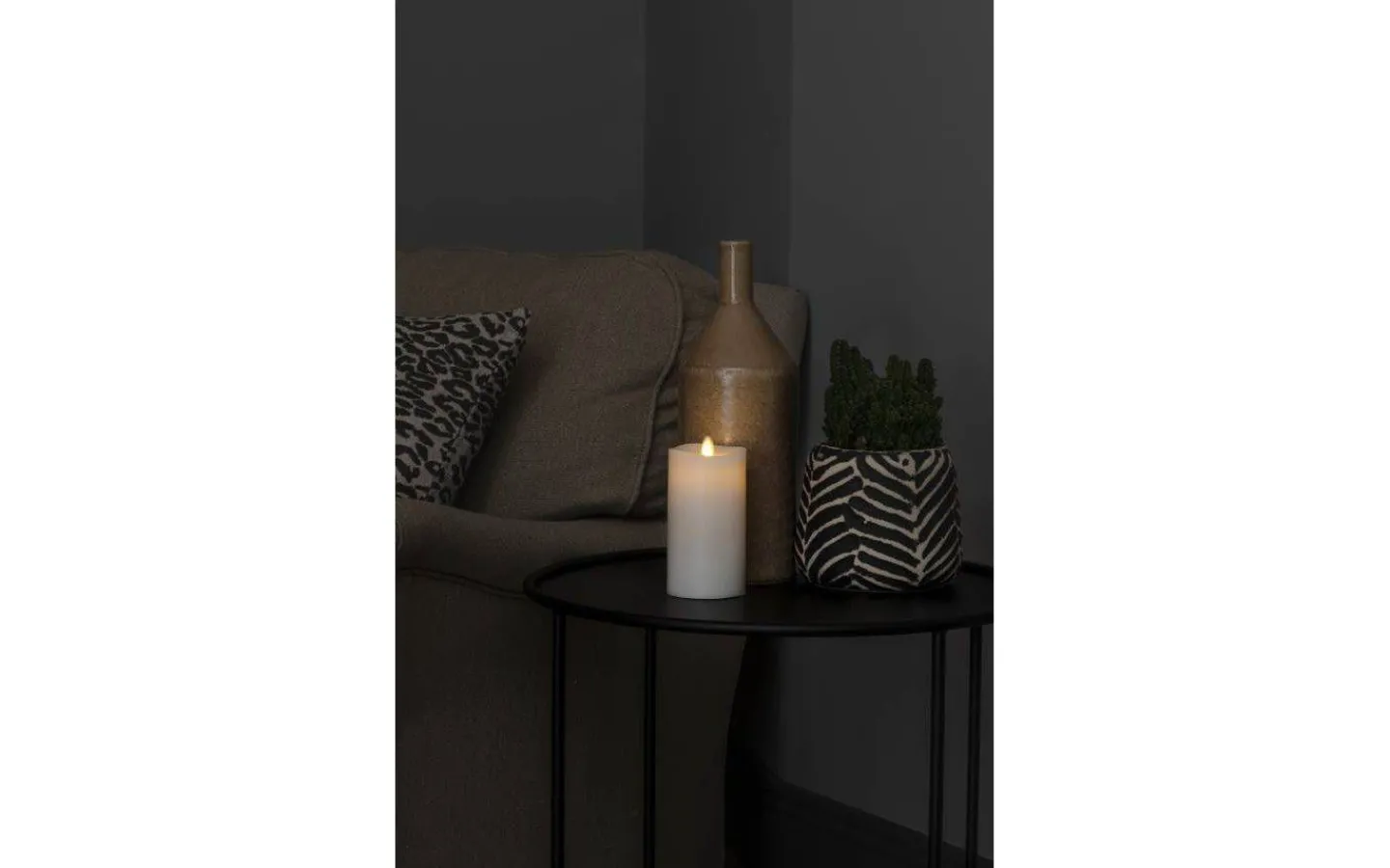 Wave blockljus från Konstsmide har en ljuslåga i LED. Detta fina blockljus i vax lyser i ett mysigt varmvitt ljussken.