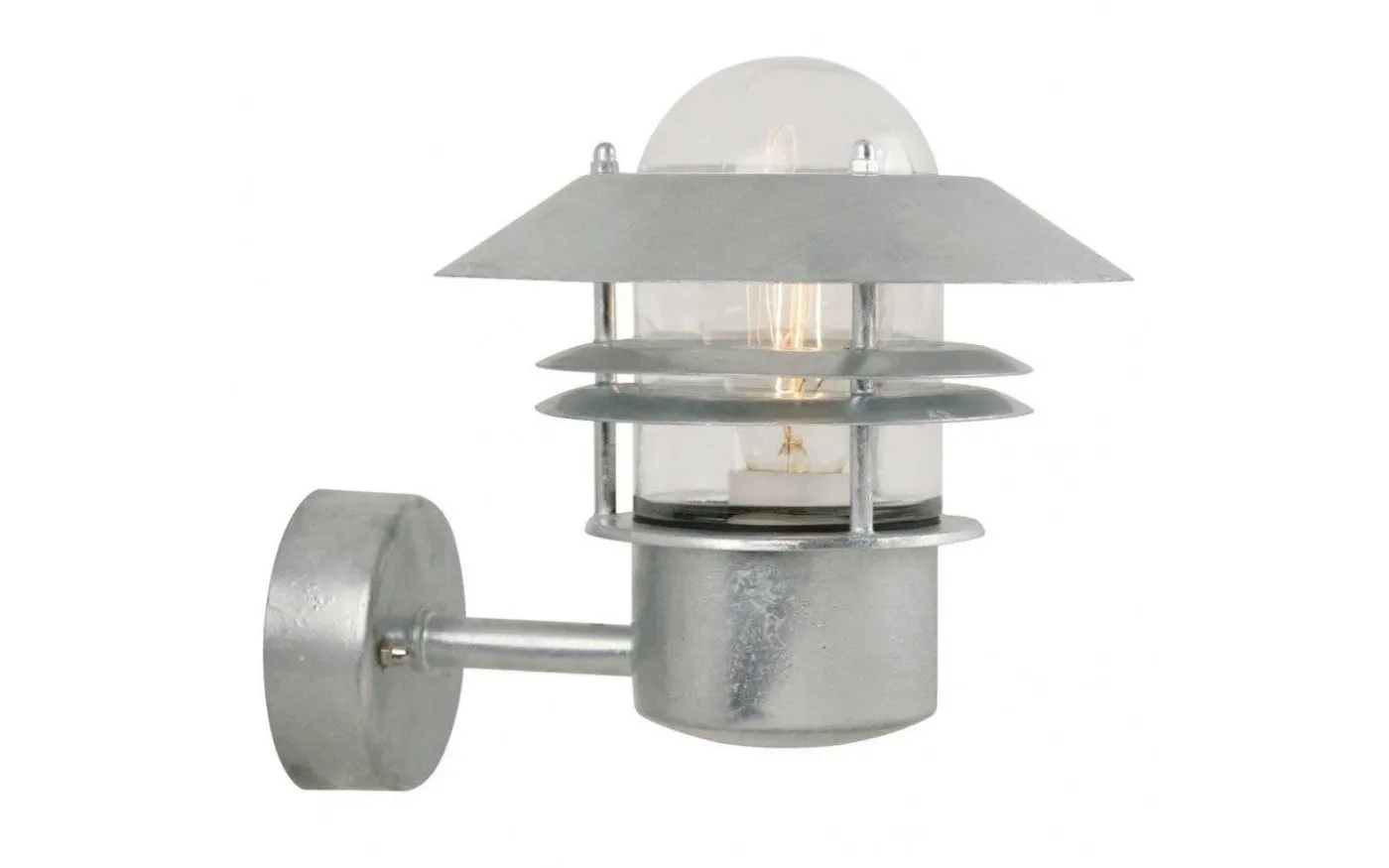 Fina vägglampan Blokhus från Nordlux som är robust och tålig är gjord i galvaniserat stål och kupa av glas. Placera Blokhus på din fasad, utanför ytterdörren, på garageväggen eller i trädgården. Lampan är designad med uppåtvänd lampskärm och lampan avger ett behagligt och sobert ljus. Den galvaniserade ytan gör att lampan även lämpar sig för kustnära miljöer.