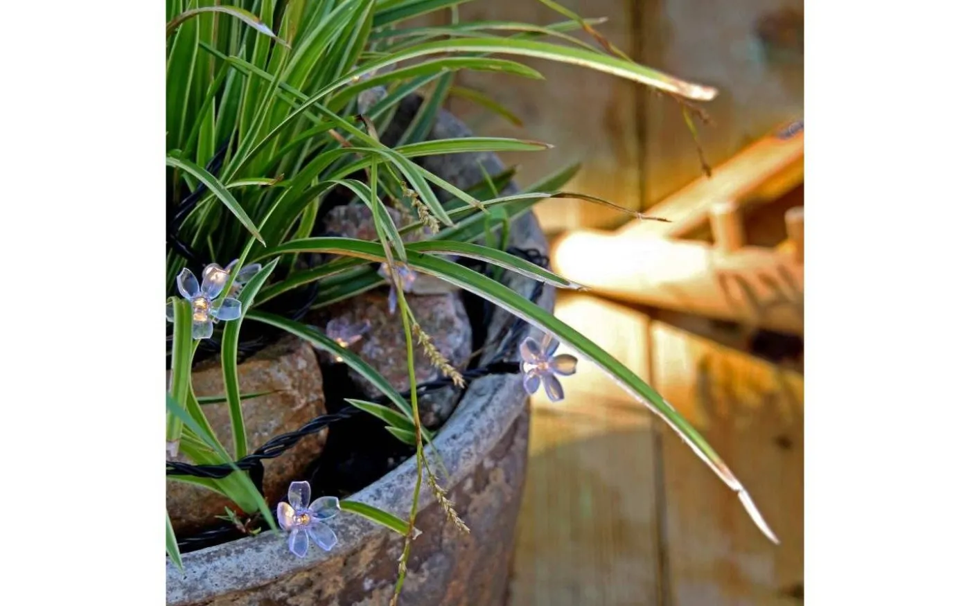 Bloom är en 10m lång ljusslinga med 100 st LED-lampor där varje lampa har en söt, transparent blomma. Denna ljusslinga har, utöver ljusslingan på 10 meter, 3 meter lång anslutningskabel med snabbkoppling som kopplas till en transformator eller i en befintlig snabbkoppling på ditt Lightson-system. Slingan går att koppla vidare med max 4st slingor efter varandra eller förgrenat, observera att likriktarkabeln måste kopplas in före slingan/slingorna, och att endast en AC/DC omvandlare då ska användas. LED-lamporna avger ett mysigt, varmvitt ljussken och denna ljusslinga blir en fin dekoration i din trädgård eller på din uteplats.