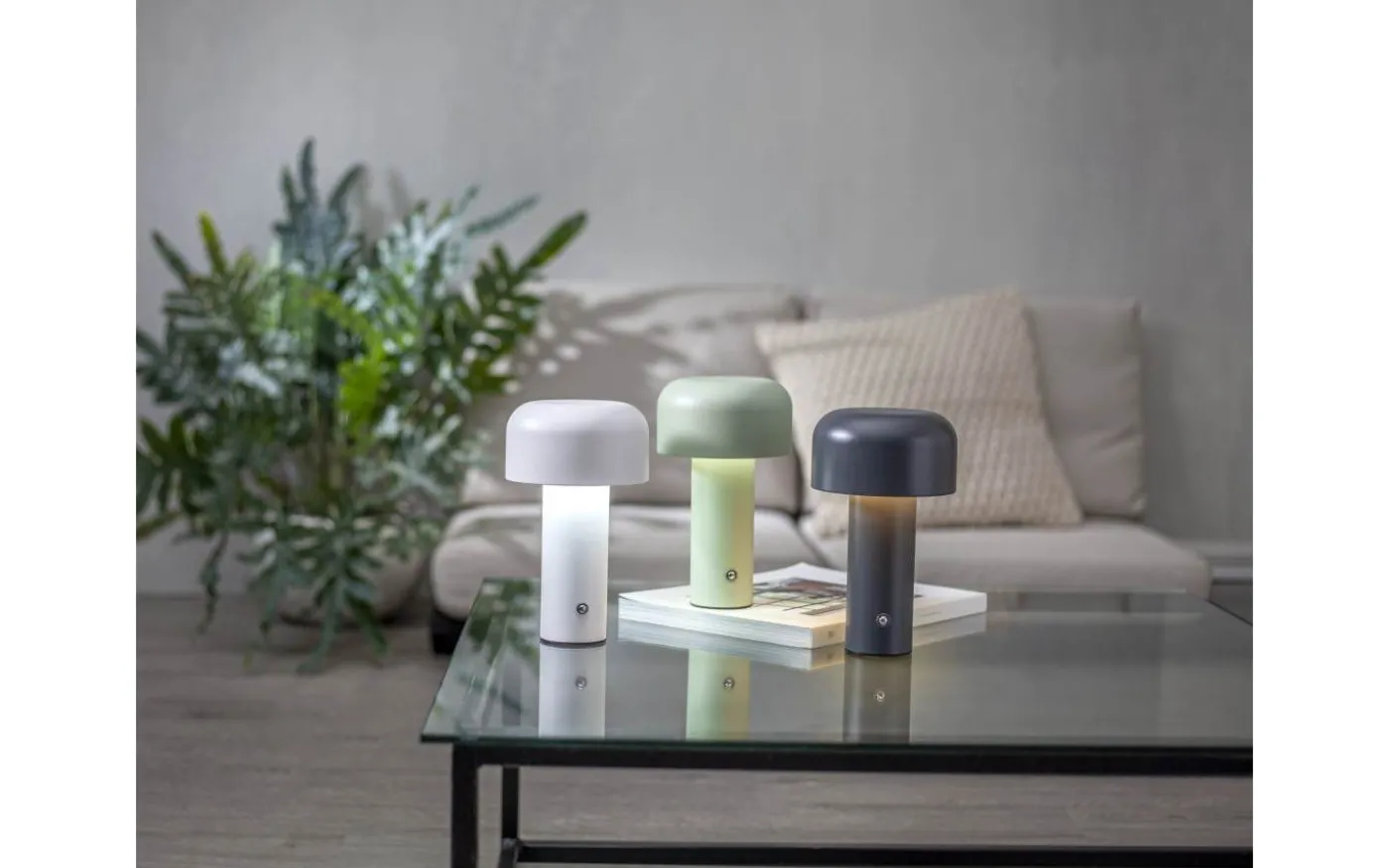 Uppladdningsbar bordslampa med tre färgtemperaturer (varmvitt, kallvitt, dagsljus), detta justeras med ett lätt tryck på knappen och håll sedan in knappen för att dimma till önskad ljusstyrka.
