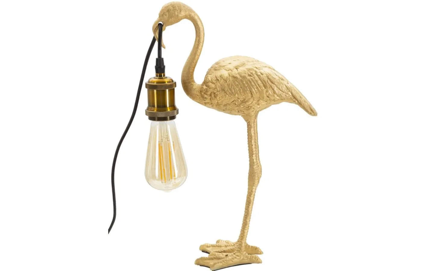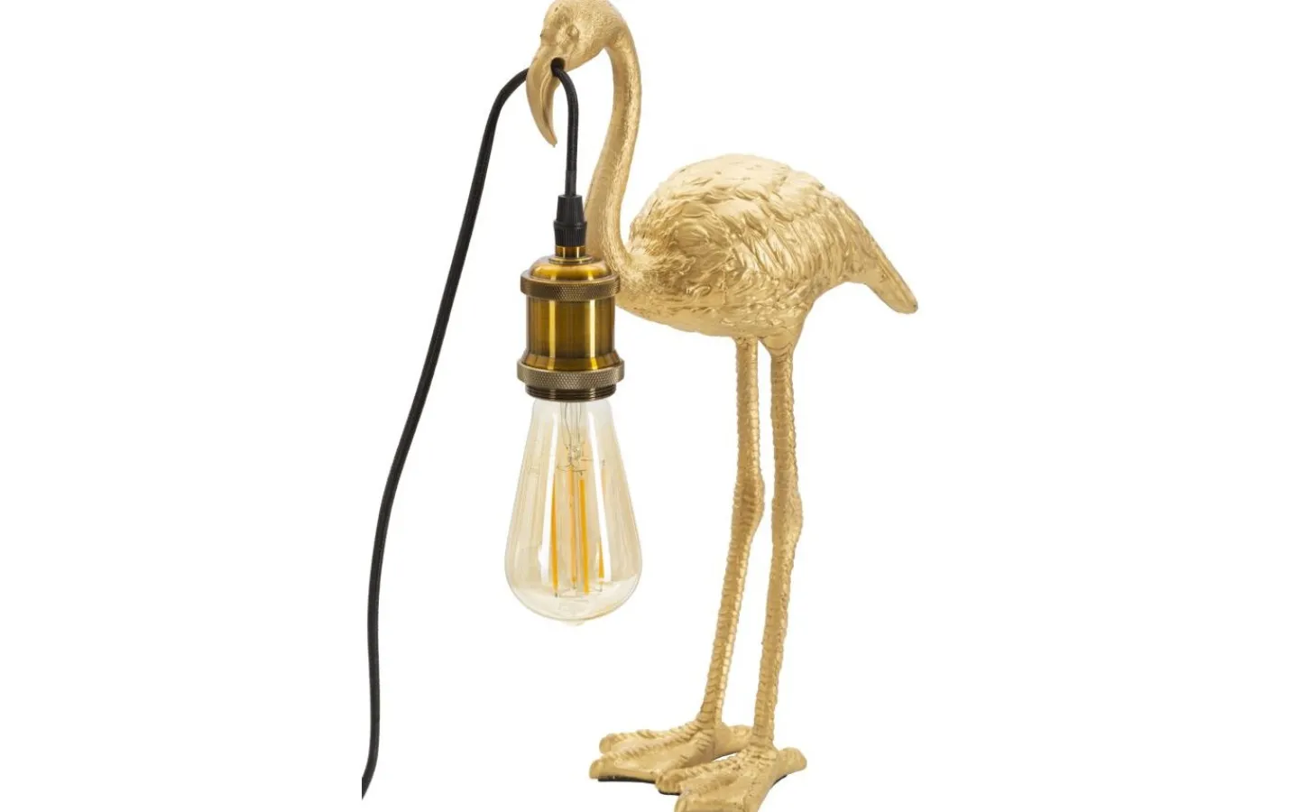 Bordslampa i guldharts som föreställer en söt flamingo som håller i glödlampskabeln med sin näbb. En touch av glädje att kombinera med alla typer av möbler.