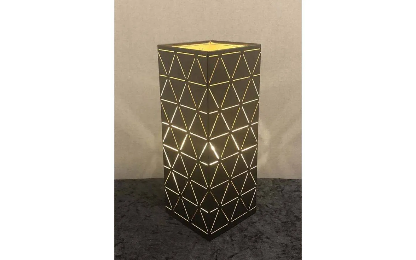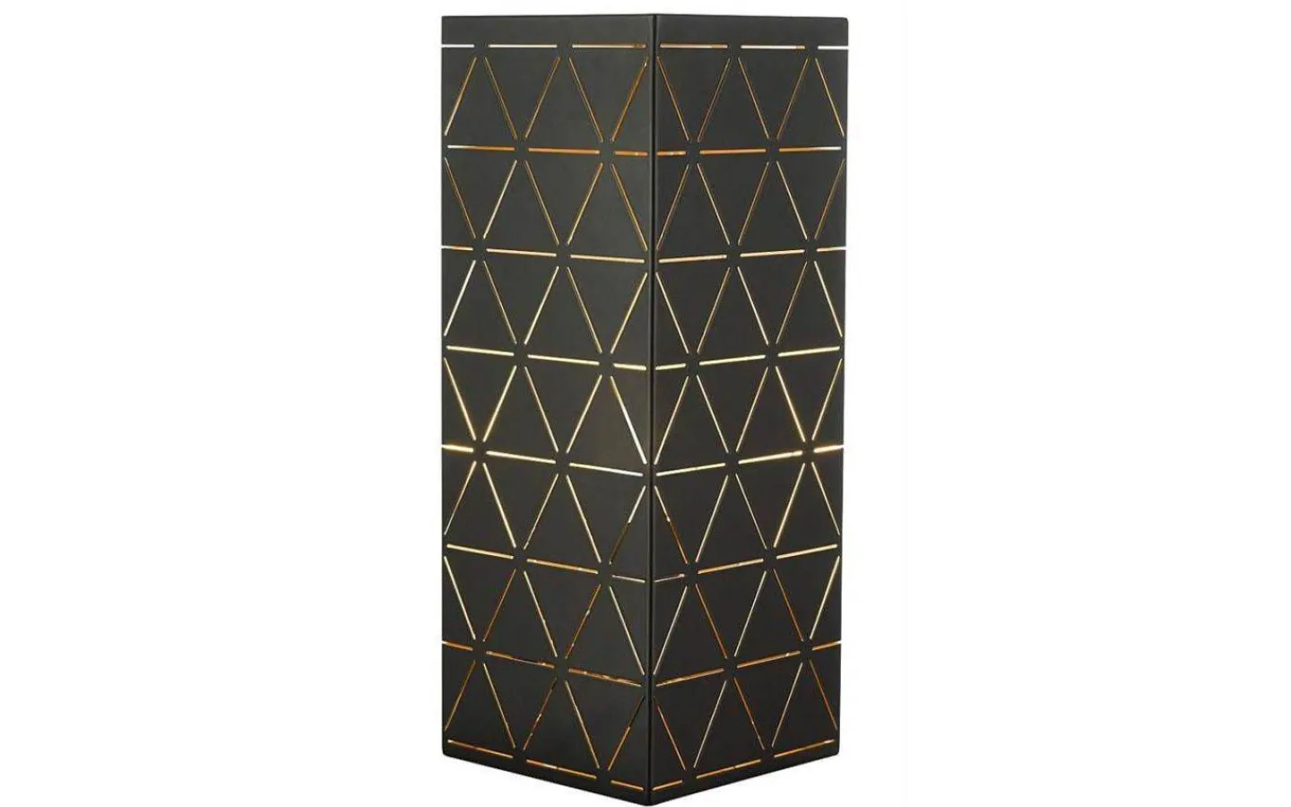 Laserskuren bordslampa från Oriva är en snygg fyrkantig bordslampa i metall med laserskuret mönster som ger en fräck effekt när lampan är tänd. Denna bordslampa har en guldfärgad insida för extra effekt.