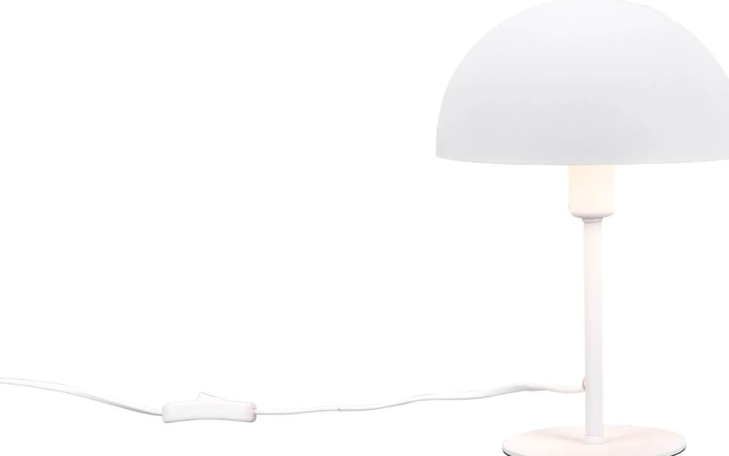 Bordslampan NOLA har en puristisk och klassiskt inspirerad form som garanterat kommer att imponera. Den moderna, svampformade designen smälter sömlöst in i din inredning och skapar harmoni i ditt vardagsrum på en byrå eller nattduksbord. Lampan kan också enkelt tändas och släckas med en sladdströmbrytare. Tack vare sin moderna design i mattvitt och sin mångsidighet kan lampan användas var som helst i hemmet. För modern och pålitlig belysning rekommenderas en LED-lampa. Den erbjuder hög ljuskvalitet, är mångsidig och övertygar med jämn belysning. Dess långa livslängd och låga värmeutveckling gör den till det perfekta valet för en mängd olika användningsområden. Ljuskälla: exklusiv 1x E14 · max. 28W. Extra information: Kabelbrytare, IP20, Lampa(or) ingår ej