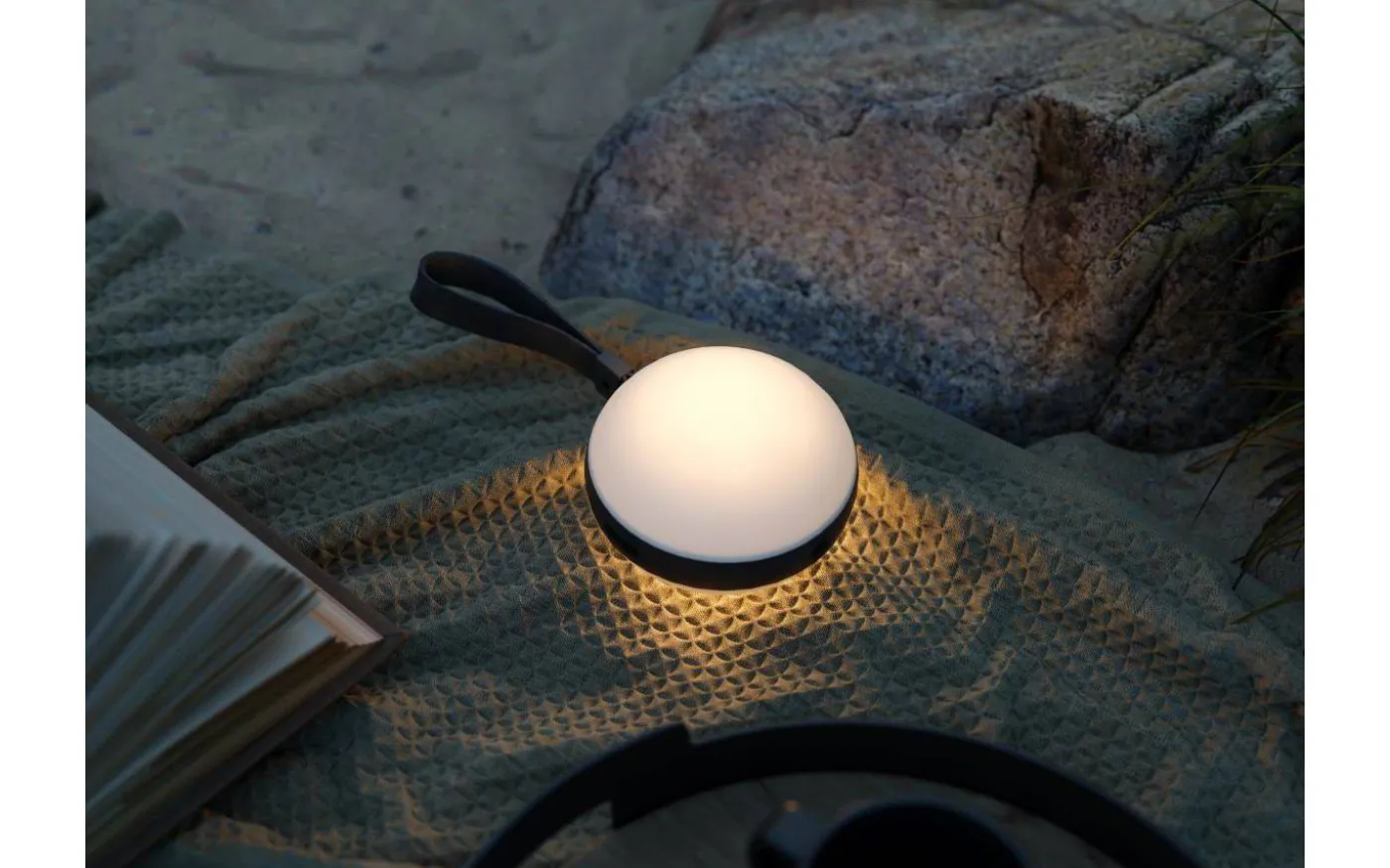 Bring uppladdningsbar klotlampa från Nordlux är en elegant bärbar utomhuslampa av formgivarna Timothy Jacob Jensen och Alasdair McPhail. Bring har en rund upplyst yta som är elegant omsluten av ett svart gummiband som även fungerar som praktiskt handtag eller upphängning.