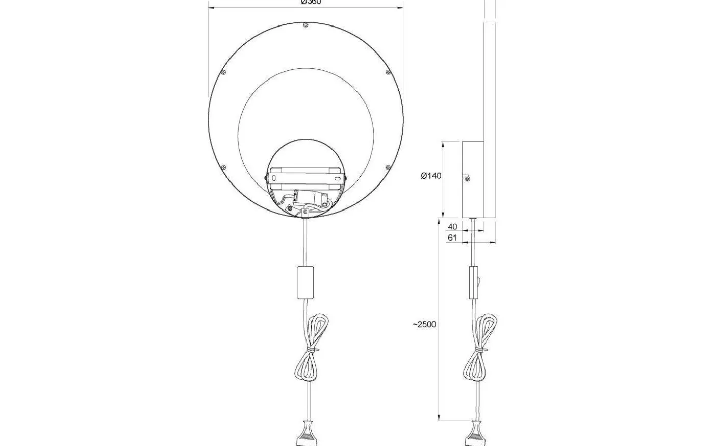 Levereras med anslutningskabel med strömbrytare och stickkontakt för vägguttag som enkelt tas bort vid montering i tak eller fast installation mot väggen.