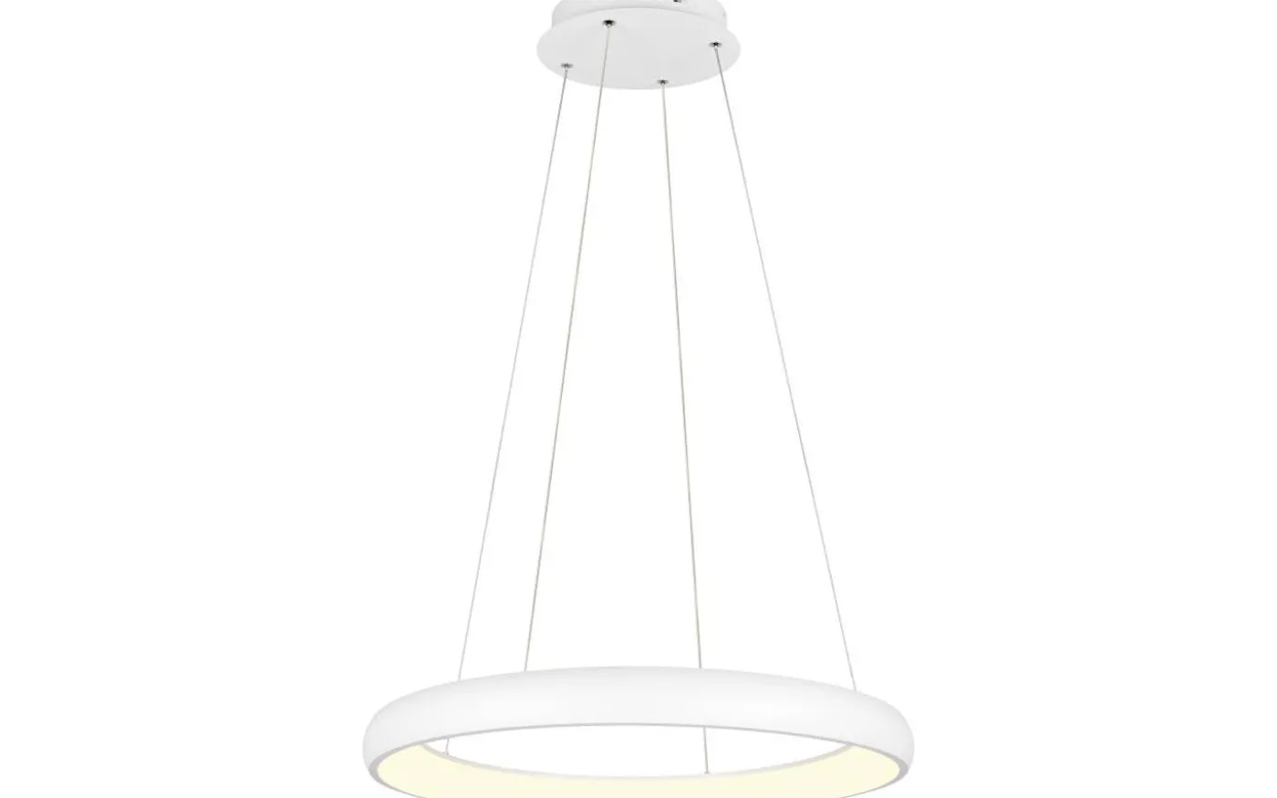 Klarhet och funktionalitet kombinerat – pendellampan CARDONA imponerar med sin slående design, som kännetecknas av en svävande ring. Denna eleganta ring verkar bokstavligen sväva i rummet och drar allas uppmärksamhet till sig. Armaturen är idealisk för moderna vardagsrum, kontor eller matsalar och ger tack vare den subtila ljuskällan inuti ringen en jämn, bländfri belysning, vilket skapar en behaglig atmosfär. Ljusstyrkan kan regleras i tre nivåer med en vanlig ljusströmbrytare och ljusfärgen kan justeras direkt med en strömbrytare på armaturen. Den vita matta ytan ger varje rum en tidlös elegans och en modern touch. Dessutom har armaturerna modern LED-teknik, vilket står för hög ljuskvalitet. LED-ljuskällor kännetecknas av lång livslängd och låg värmeutveckling. Ljuskälla: inklusive 1x SMD, 59W · 1x 6900lm, 2300+3000+4000K. Extra information: Justerbar i höjd, Takmontering, Färger direkt justerbara på lampan, IP20, Ej lämplig för extern dimmer, Dimbar via strömbrytare