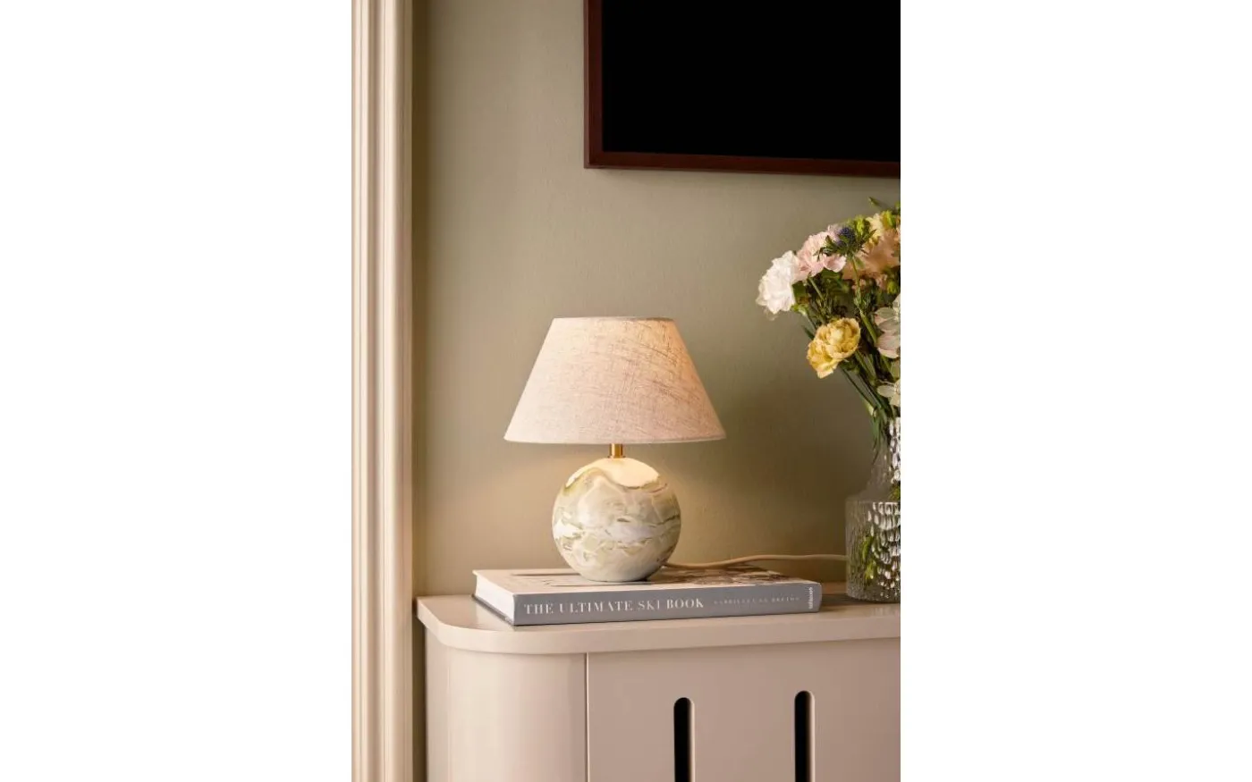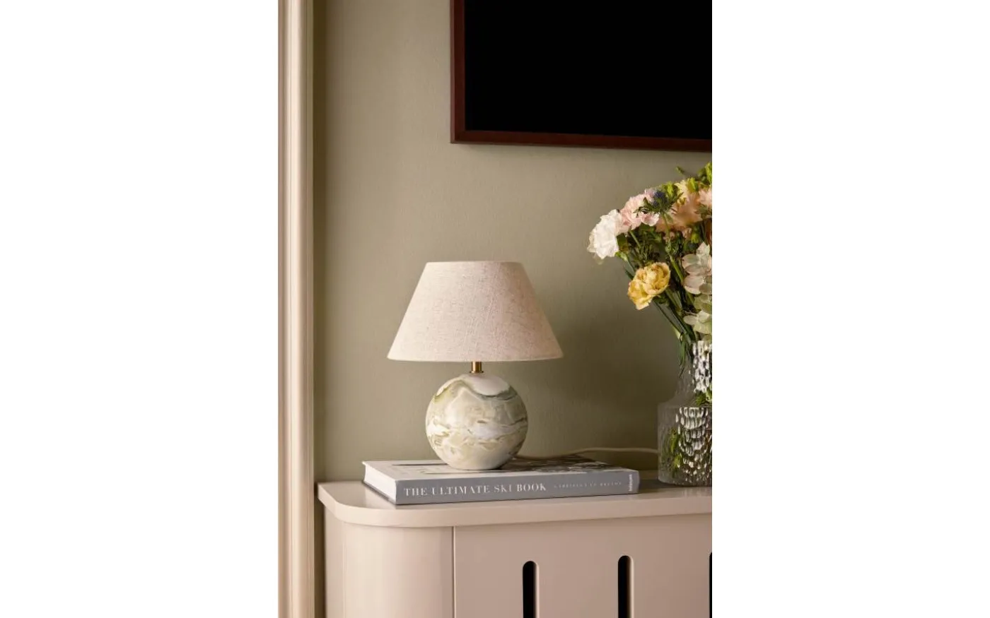 Notera att sten är ett naturmaterial, färg och skiftningar i marmorering varierar och skapar ett unikt mönster för varje lampa, därför kan lampan just du får avvika en aning från bilderna.