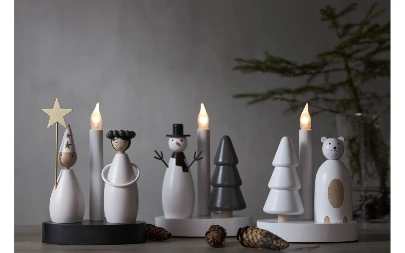 Joy adventsljusstake från Star Trading är en härlig juldekoration i form av en svarvad isbjörn och en gran tillverkad i trä med ett dekorativt ljus som lyser upp i ett härligt varmvitt ljussken.