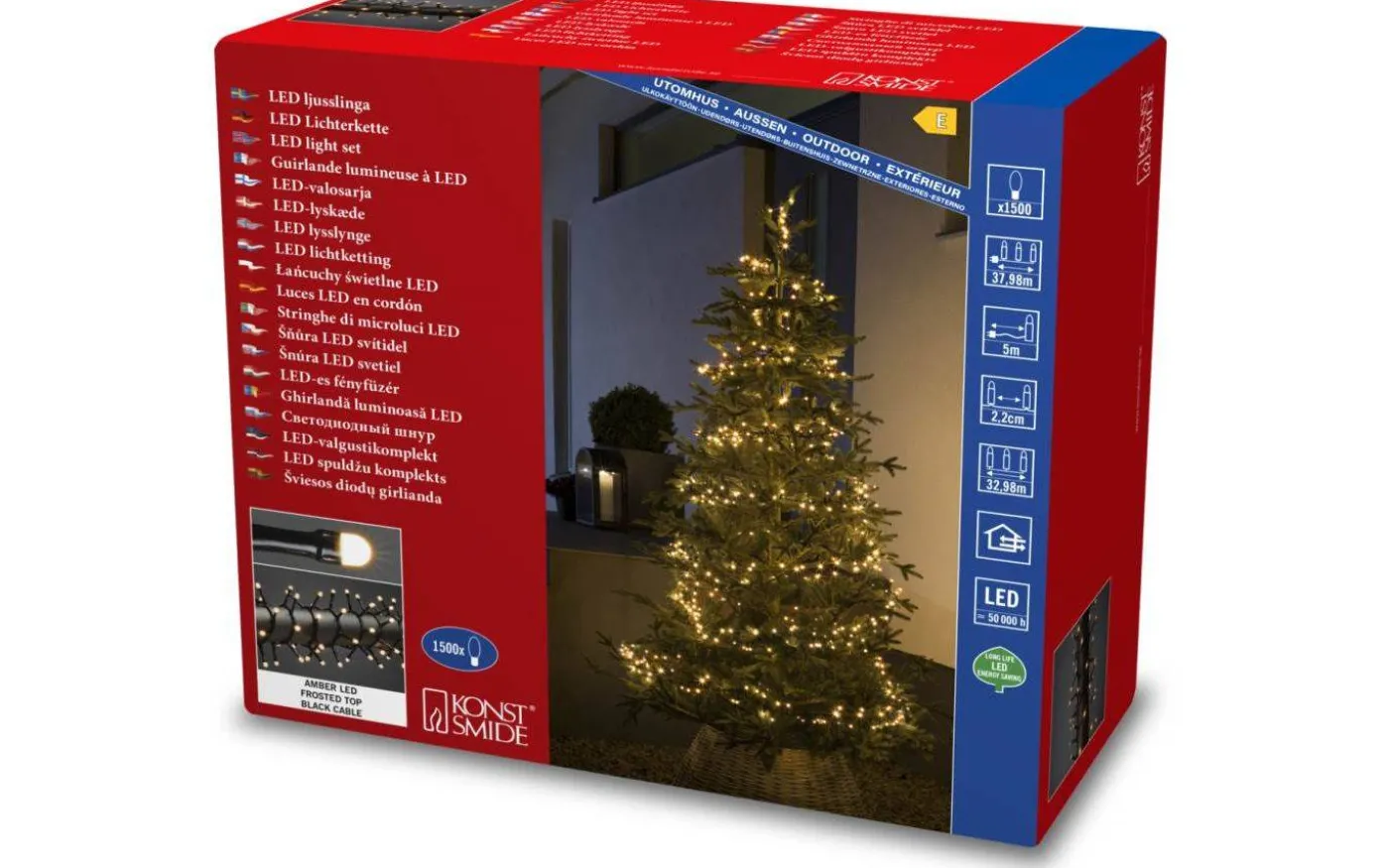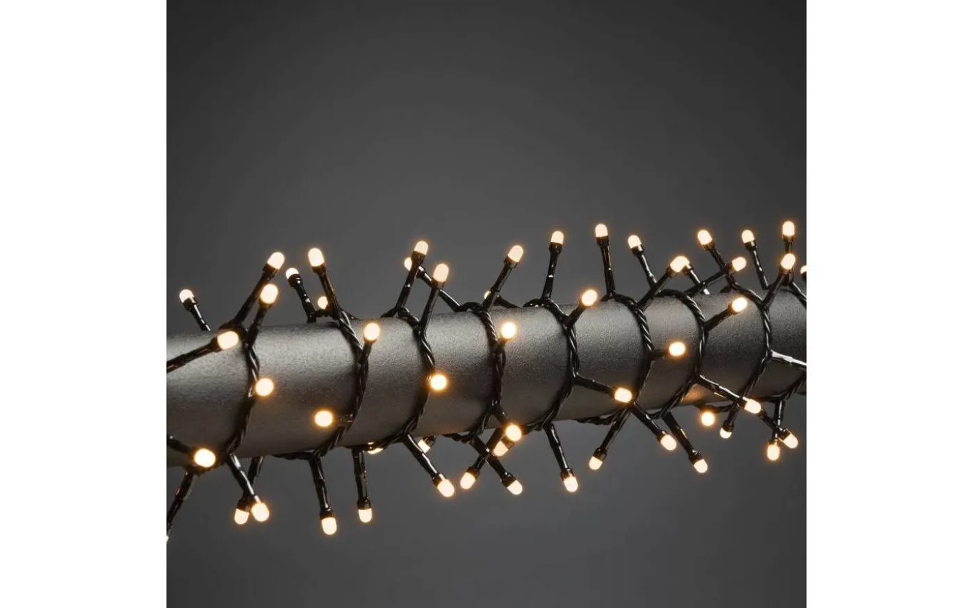 Cluster ljusslinga från Konstsmide är 32,98m lång med hela 1500st små frostade LED-lampor som lyser upp i ett härligt extra varmvitt ljussken. Med sin IP44 klass är denna slinga perfekt att dekorera med utomhus för att skapa en härlig atmosfär i nattens mörker.