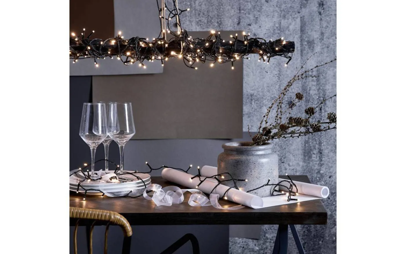 Ljusslinga från Star Trading, som är 3.6 meter lång med 180 stycken LED-ljuskällor som lyser i ett lite kallare ljussken. Då det enbart är 2cm mellan varje lampa blir ljusflödet mjukt och jämt. Vira runt trappräcket eller runt julgranen för att få din trädgård extra julig under adventstider.