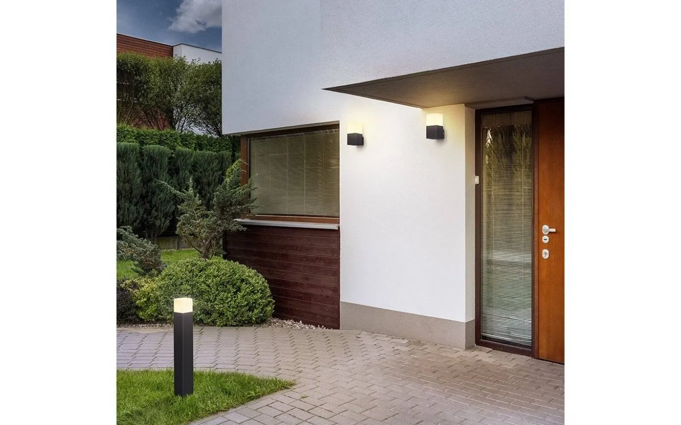 Stilrena Clyde trädgårdspollare från Rendl är en elegant pollare gjord i aluminium med antracit finish och med opalfärgad skärm som släpper genom ett fint ljusflöde.