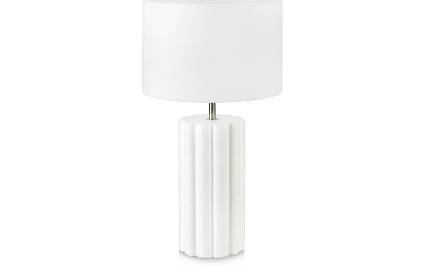 Column bordslampa, från välkända Markslöjd, är en stilren bordslampa med fot i vit keramik och vit, cylinderformad textilskärm.