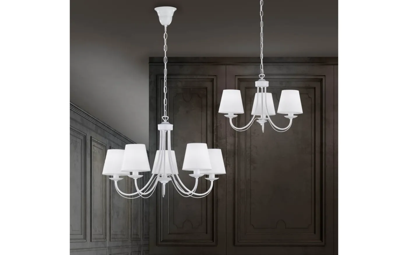 Ljuskronor frammanar mer klassisk elegans och design i ett rum än någon annan lampa. Ljuskronor passar dock inte längre bara för klassiskt inredda rum. Den vita CORTEZ-metallkronan i kombination med de mattvita tygskärmarna kan integreras perfekt i moderna inredningsstilar. Oavsett om det är i vardagsrummet, sovrummet eller köket ger ljuset ditt rum en speciell känsla. Ljuskronan har en diameter på 47 cm och en upphängningslängd på 150 cm. De tre ljuskällorna har en E14-sockel och kan utrustas med en LED- eller halogenlampa med en maximal effekt på 28 watt. Förutom mattvit finns CORTEZ även i en betongfärgad version, vardera med fem ljuskällor. Ljuskälla: exklusivt 3x E14 · max. 28W. Extra information: Takmontering, IP20, Lampa(or) ingår ej