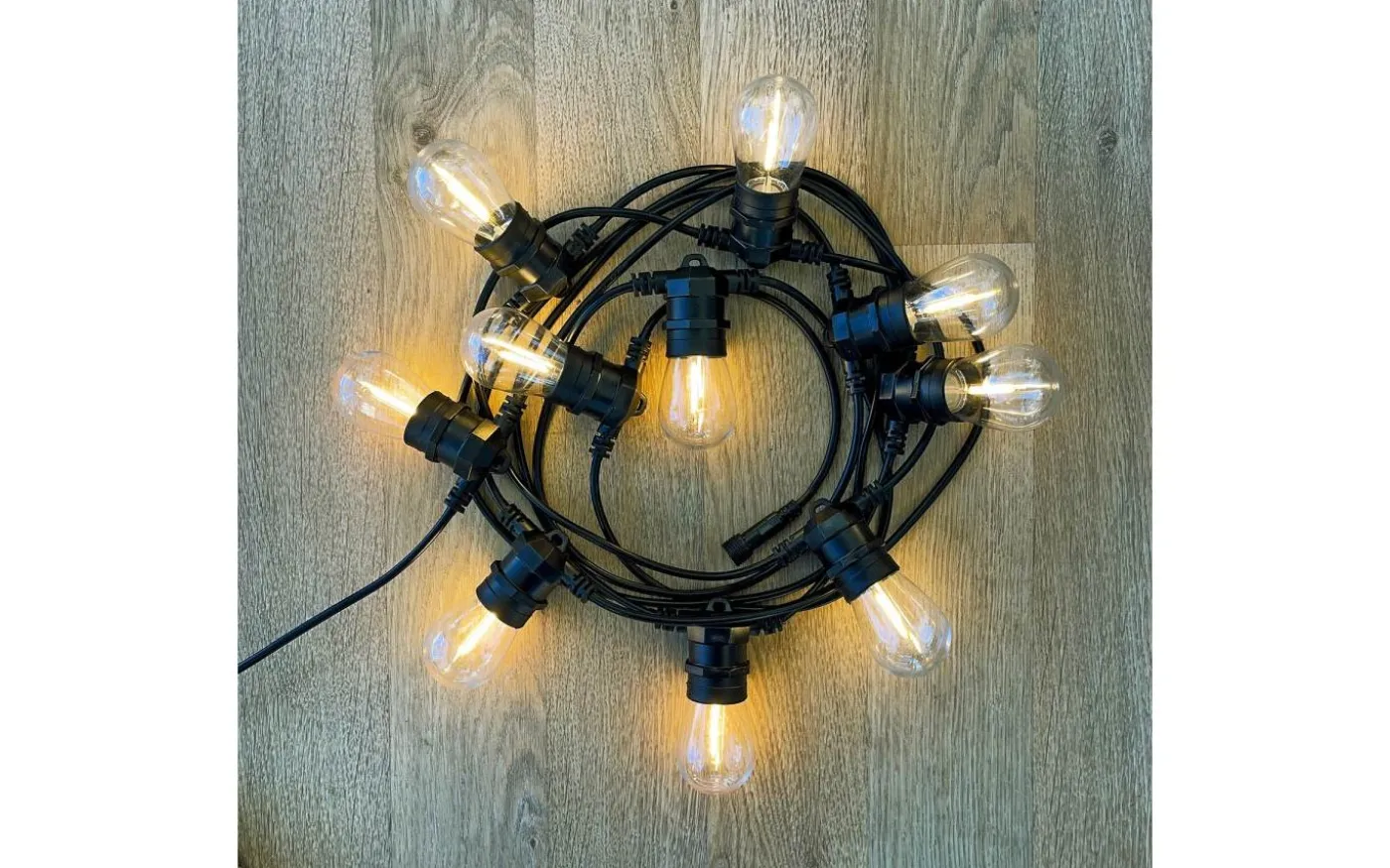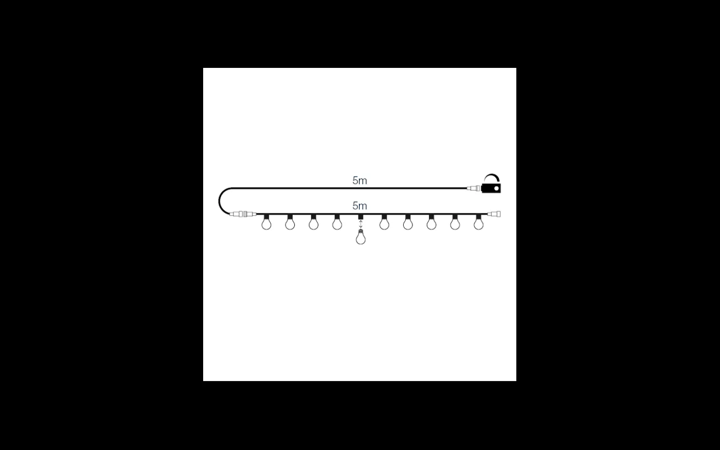 Startkit med 10 stycken ljuskällor, 5 meter kabel och en transformator med inbyggd dimmer. Det går att dimma på 4 olika steg – 25%, 50%, 75%, 100%. Du kan koppla totalt 6 slingor på detta startkit med en totallängd på hela 30 meter. Du förlänger ljusslingan med Cosy Extra. Se under tillbehör.